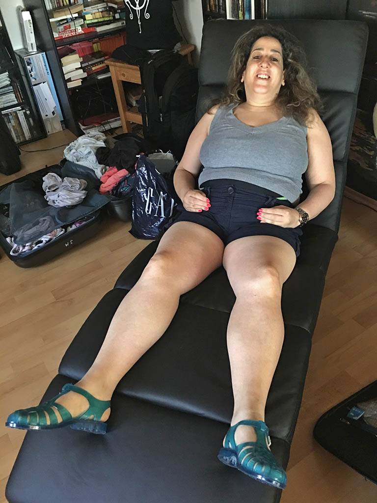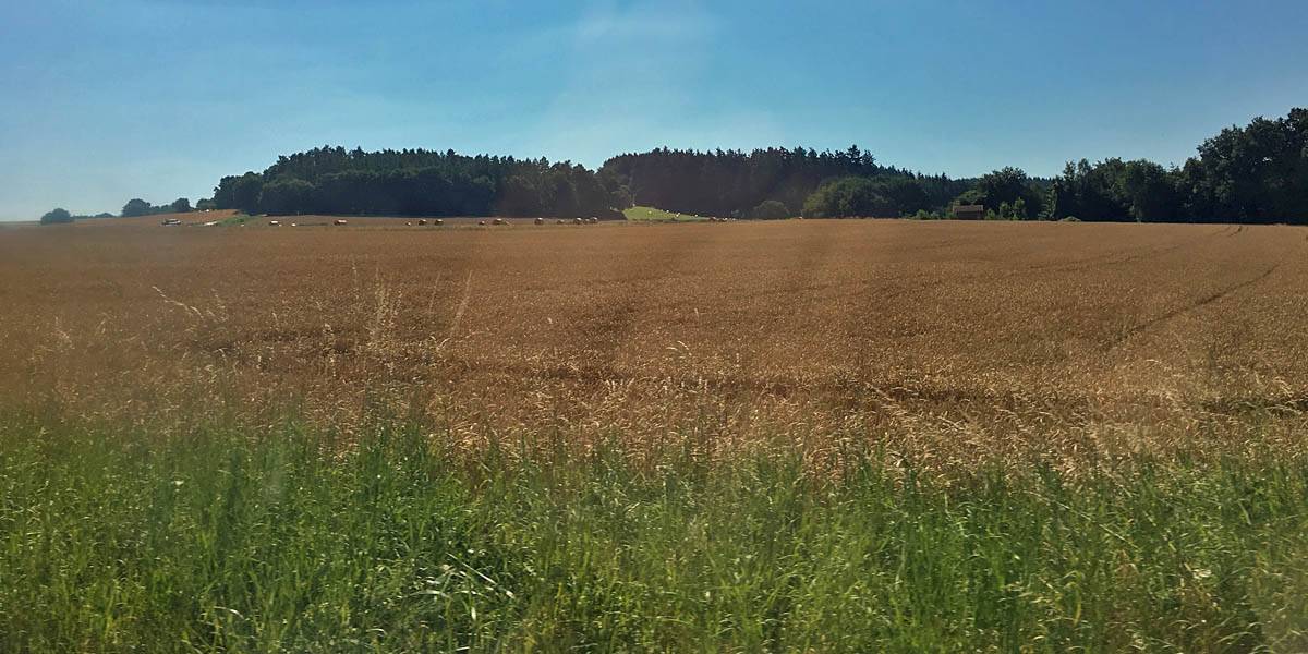 Renée enjoying Dagmar's lounger before we go out. All ready to paddle. | Dagmar's bed that was ours for the week. A comfy bed too. | Driving out through fields and woods to get to Furfurt. |