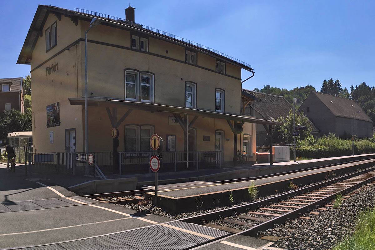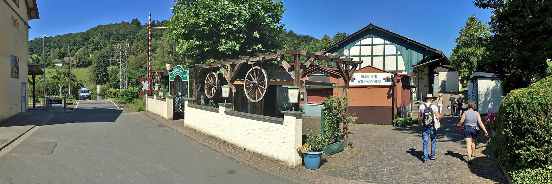 This could be a scene from Southern England. | Descending down into Furfurt after parking up at the top. | A typical German pub by Furfurt station. The canoe office is just behind. | Furfurt station. |
