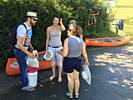 The briefing. | Preparing ourselves, putting valuables into the waterproof caskets. | Team photos time! Artem, Mathis and Renée in one boat, Silvia, Dagmar and Mike in the other boat. | Mathis, Artem and Renée setting off first. |