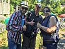 Approaching the landing. | The boat hauled out, gathering our gear and getting ready to walk. Silvia, Artem, Dagmar, Renée, Mathis. | A curious looking boat next to the landing pier. |