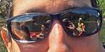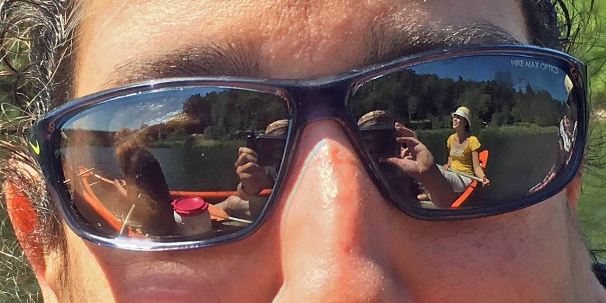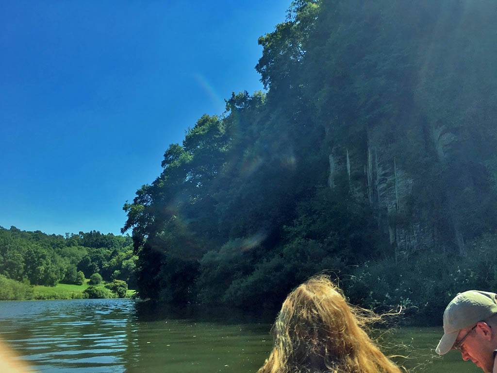 More big rocks alongside the river. | Artem and Silvia. | Looking into Renée's sunglasses and seeing a reflection of my boat with Dagmar, Mike and Silvia visible. | The bridge at Villmar. |
