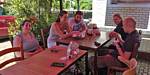 Dagmar ordered pizzas and we had very nice showers which helped cool us down and wash away the river water. The pizzas were collected at 6:30PM and were very nice. Yum!