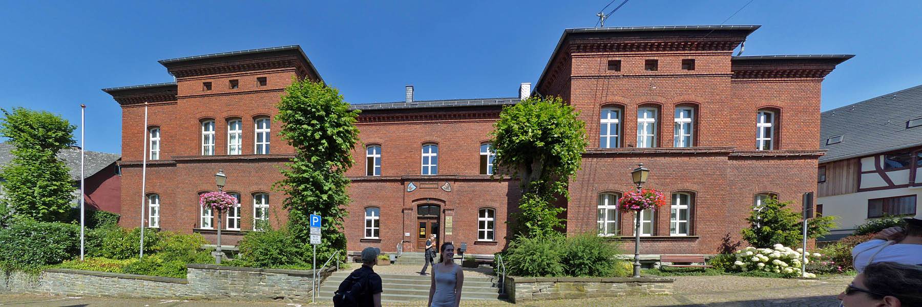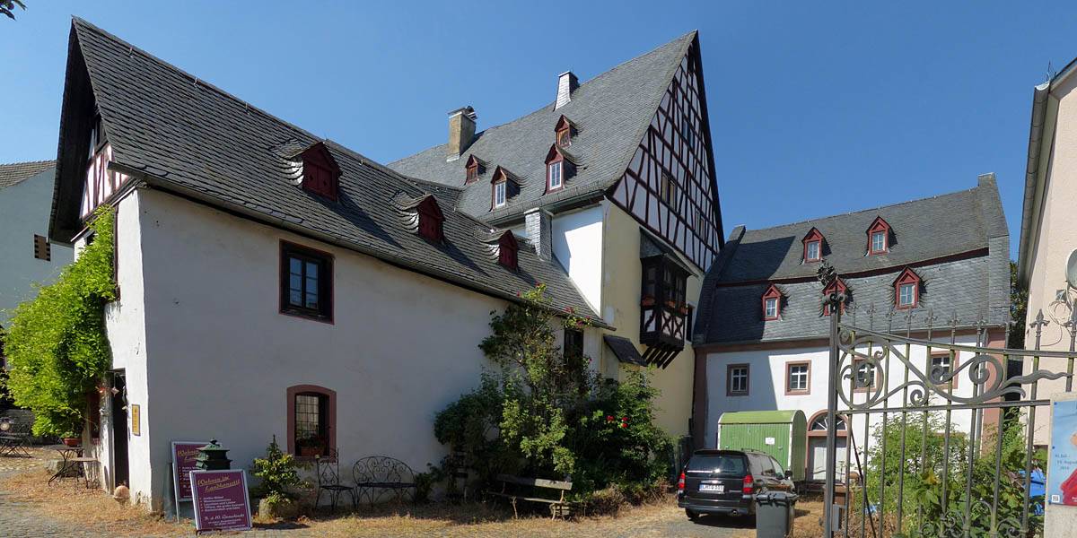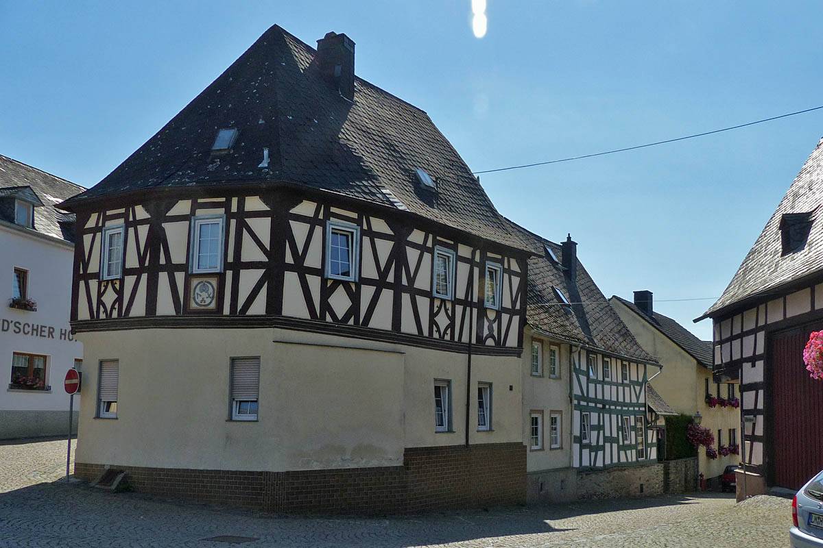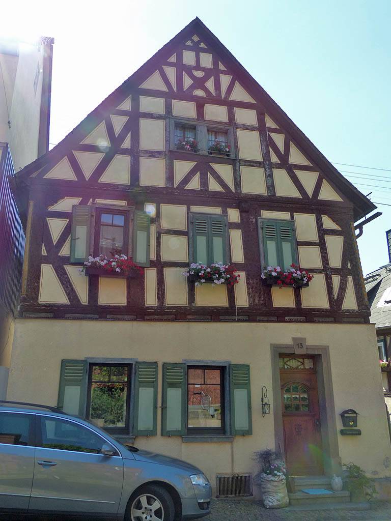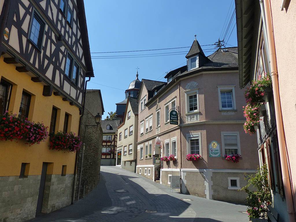 A more modern looking building near the top of Burgstrasse. | Dagmar taking pictures of the Runkel architecture. | The entrance to the castle. | More Runkel architecture as we head back down towards the station to catch the train back to Furfurt. |