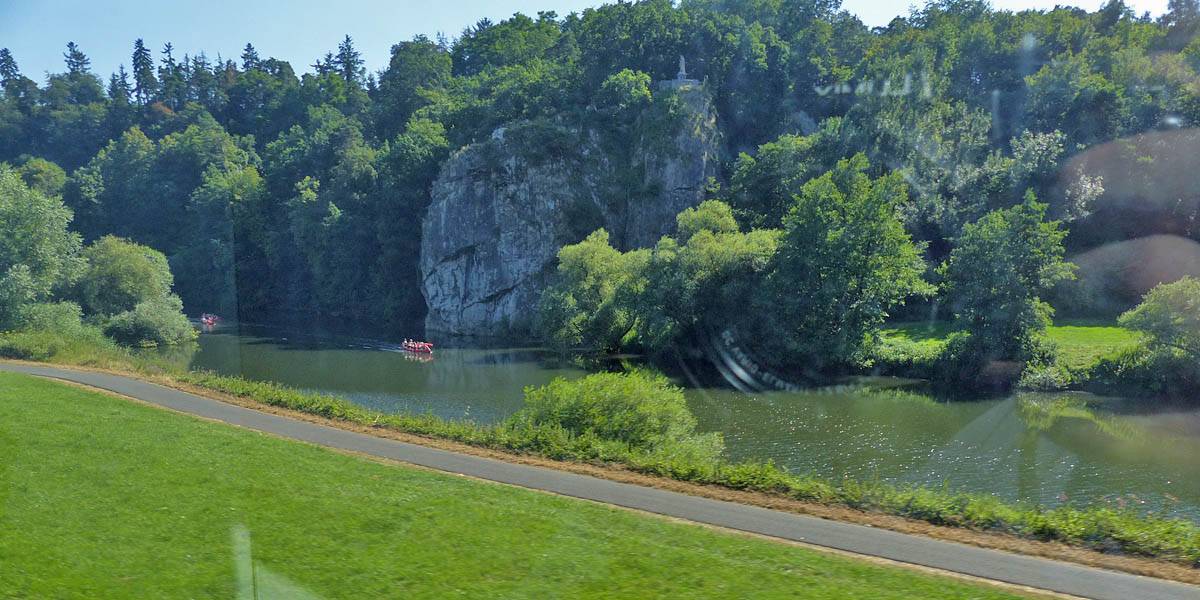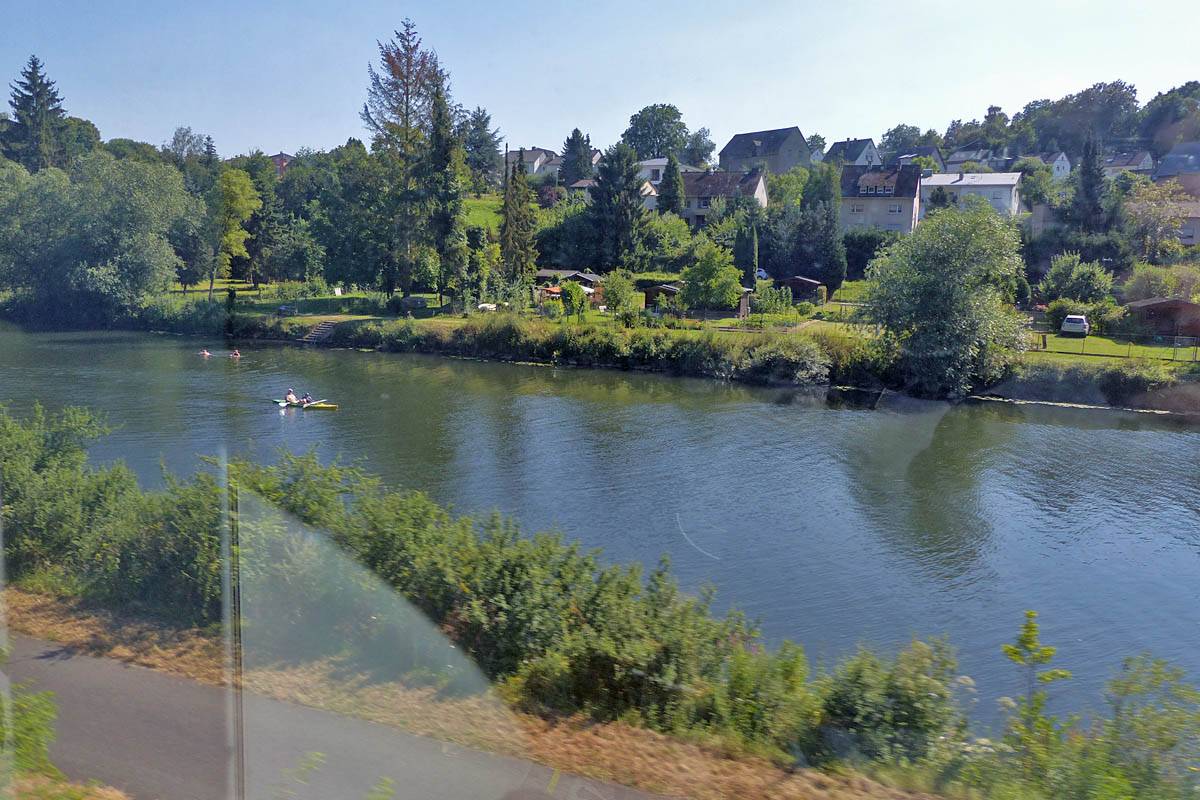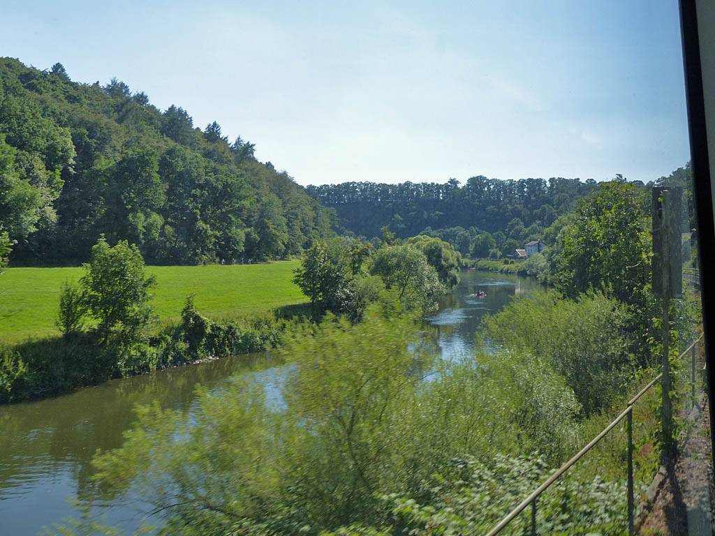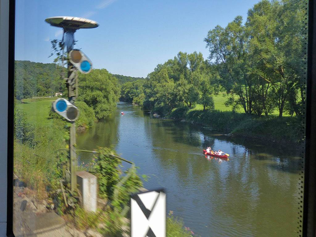 Views of the River Lahn as the train takes us back to Furfurt. It is nice to see where we rowed from a different perspective. Those mile markers are passing much more quickly now! |