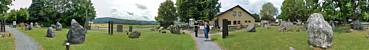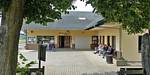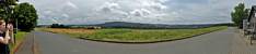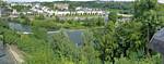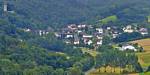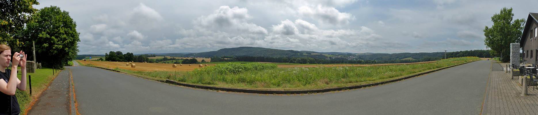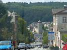 The visitor centre and cave entrance buildings. | 180 degree panorama as Dagmar takex pictures of the view across the valley towards Freienfels. | Freienfels with its castle on the left. |