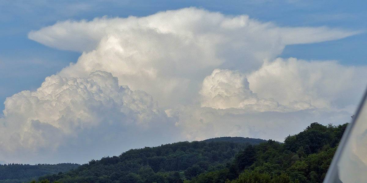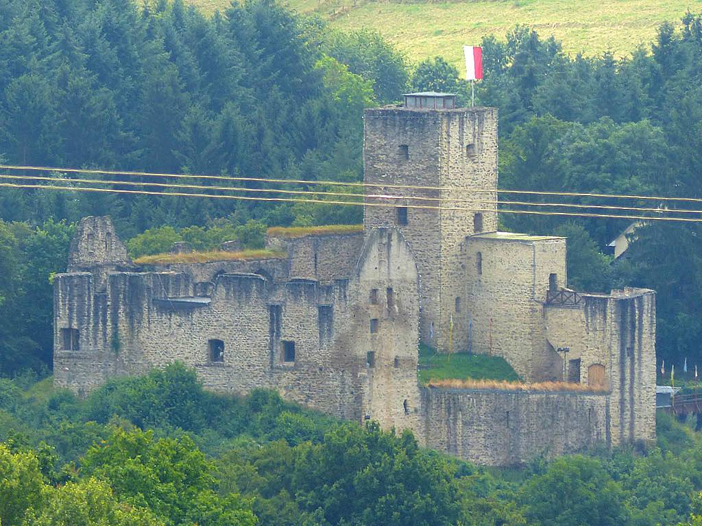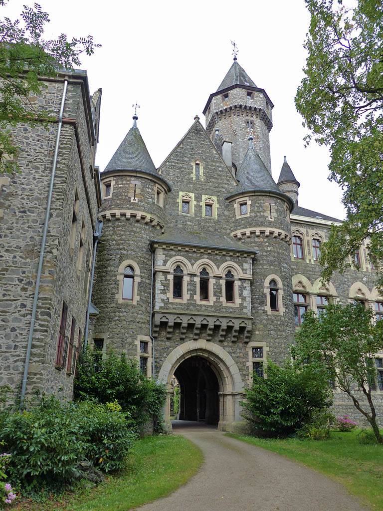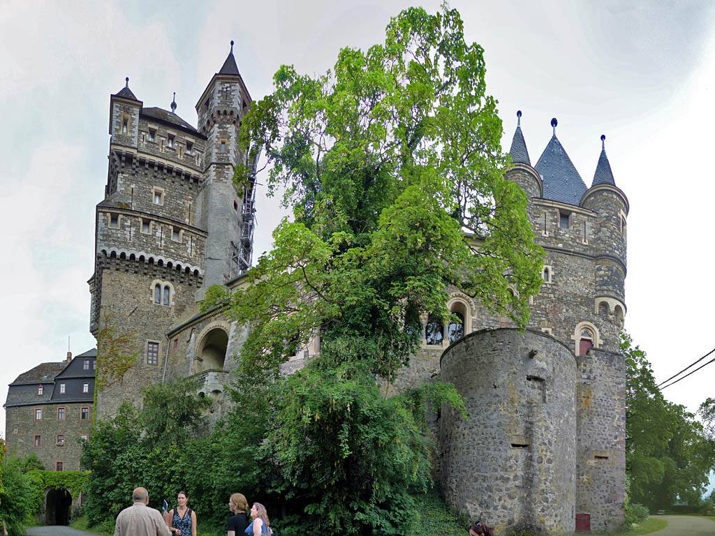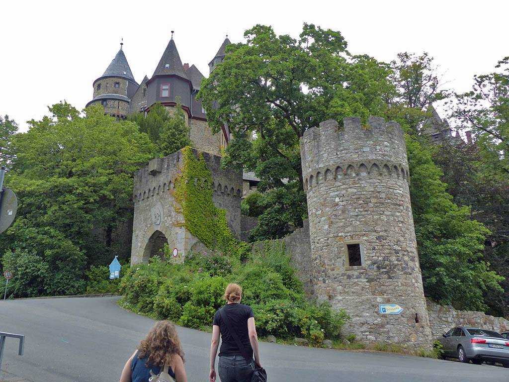 A classic thunderstorm with an anvil top building behind us. | Arriving at Braunfels Castle. | Walking into the castle. | Meeting Silvia in the passageways. |