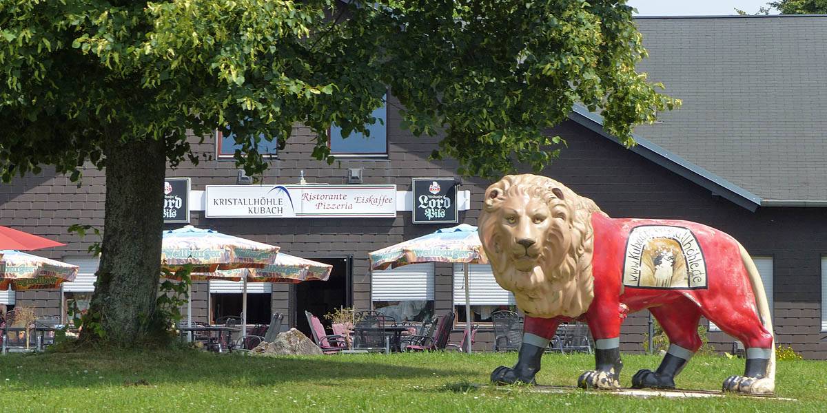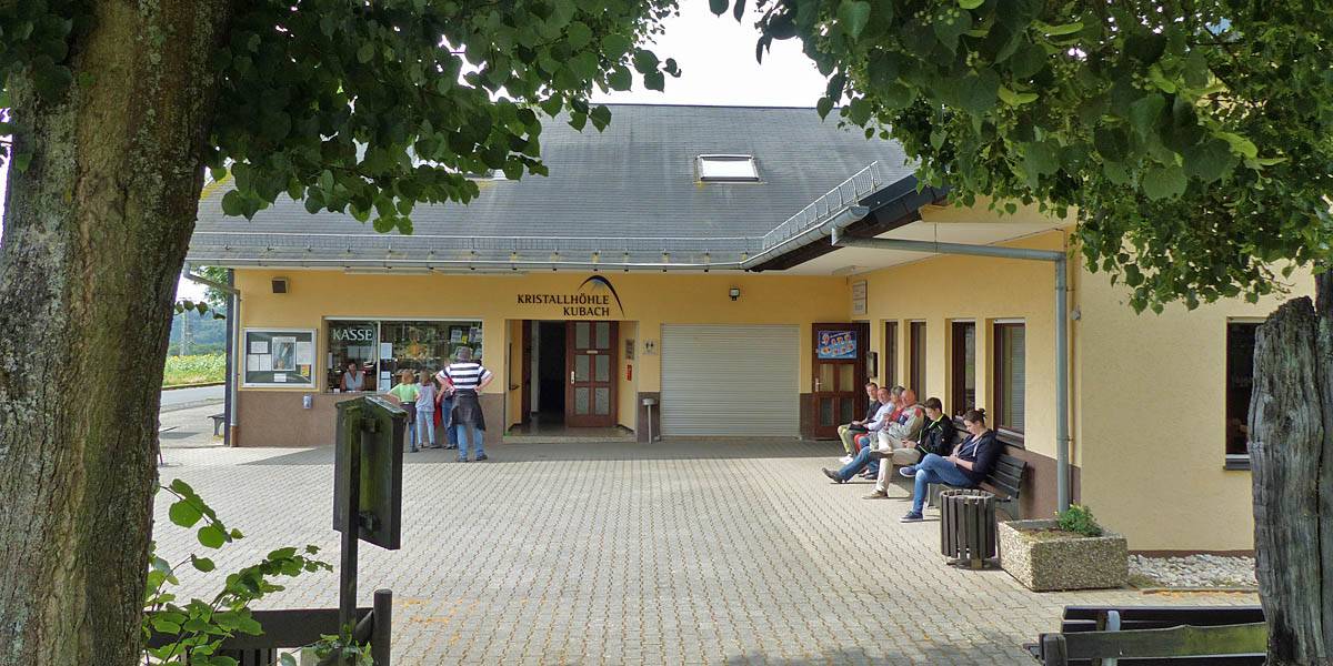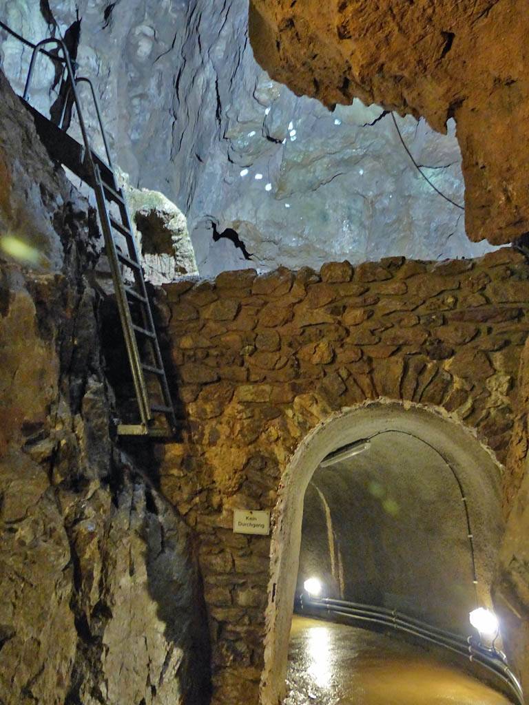 We headed off around 12:45PM and got to the cave, Kristallhöhle Kubach at 1:10PM after a nice drive back past Weilburg. The next tour was to start at 1:30PM. They charged an extra euro for photography which I thought was cheeky! But I paid anyway. I looked at a rock museum and the views from the hill while waiting. Freienfels Castle was prominent above Freienfels across the valley.