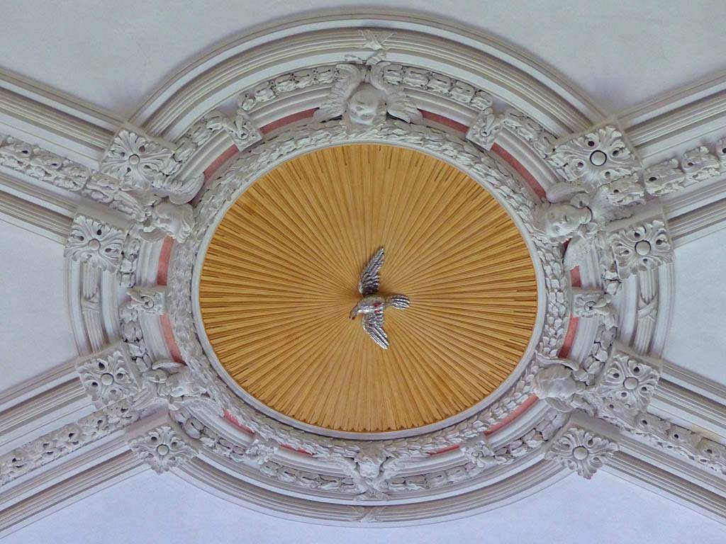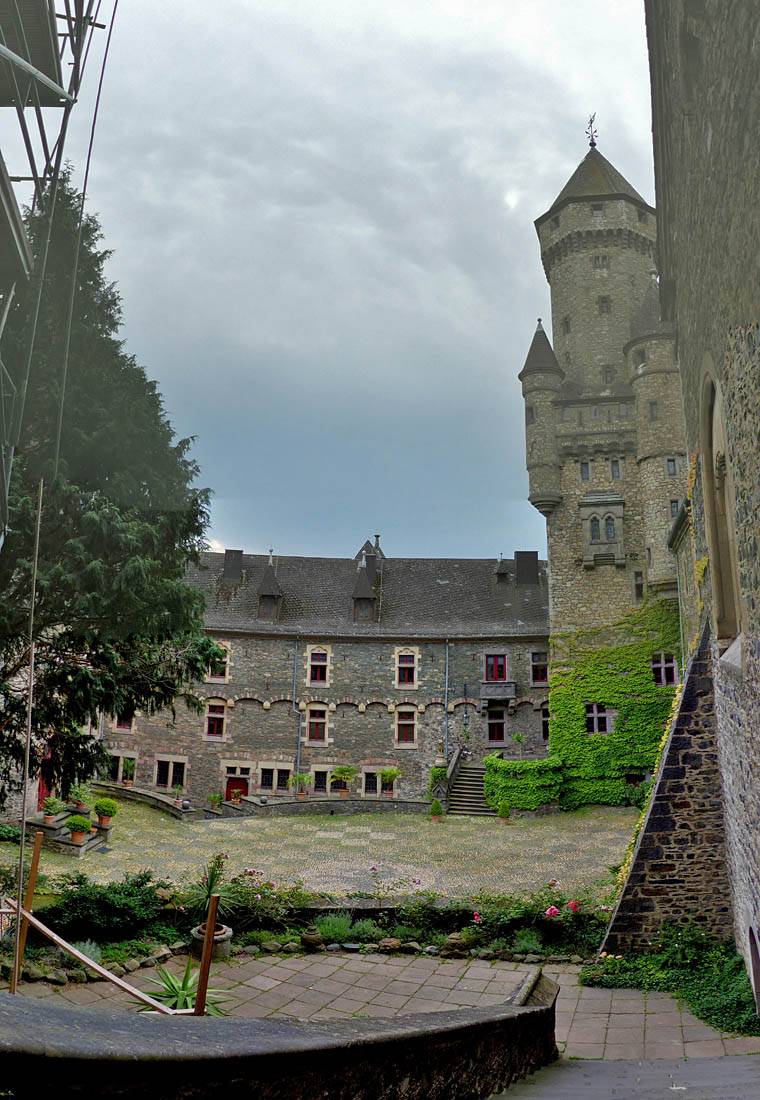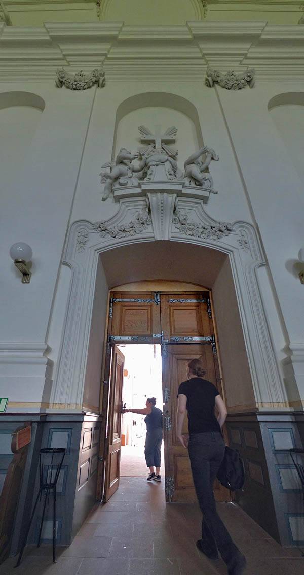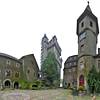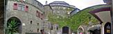 The church ceiling. | 180 degree panorama inside the church. | The entrance doorway. | Heading for the castle itself. |