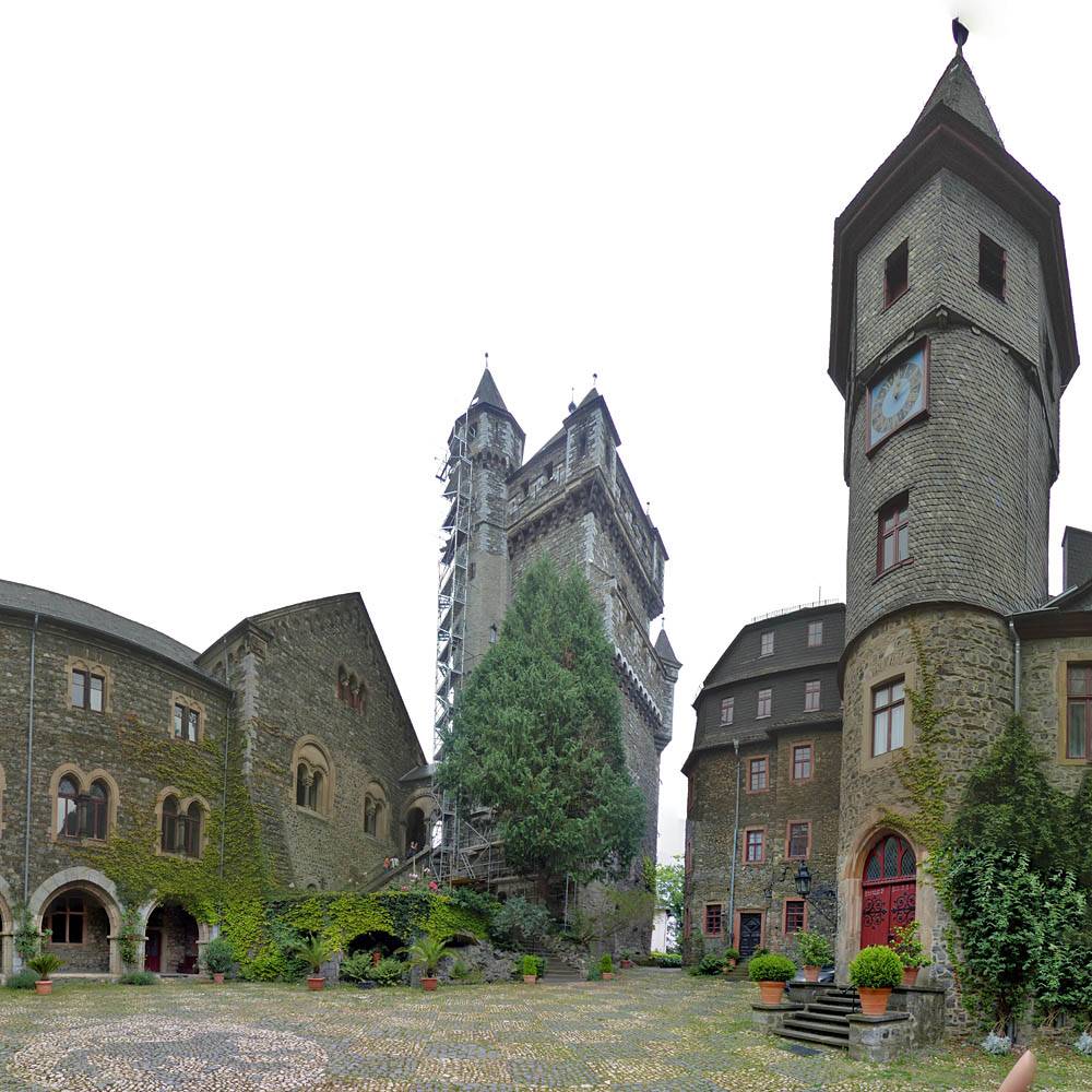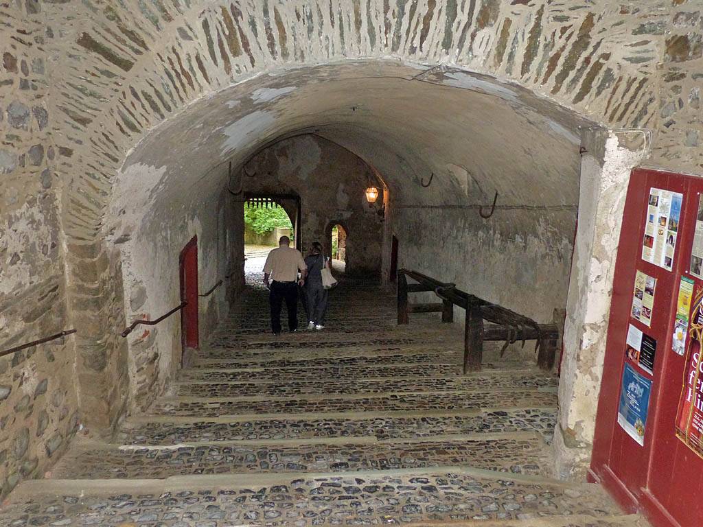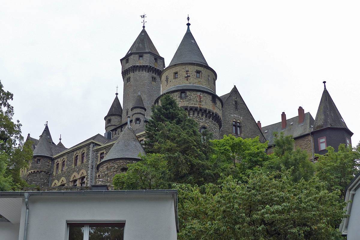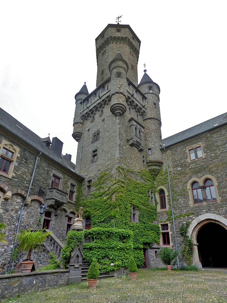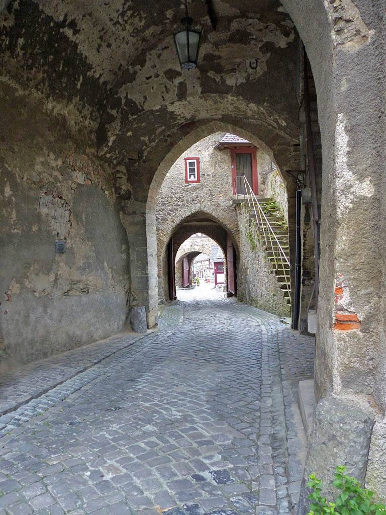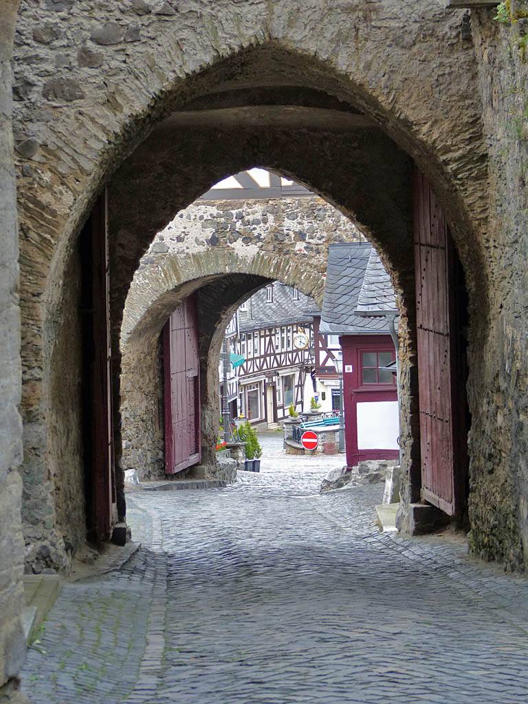Looking down at other parts of the castle from the top of the gothic tower. | Philippstein to the South has its own castle. | Time to go back down the stairs. | After the tour of the inside rooms (no pictures), looking back at the exit we came out of. |