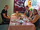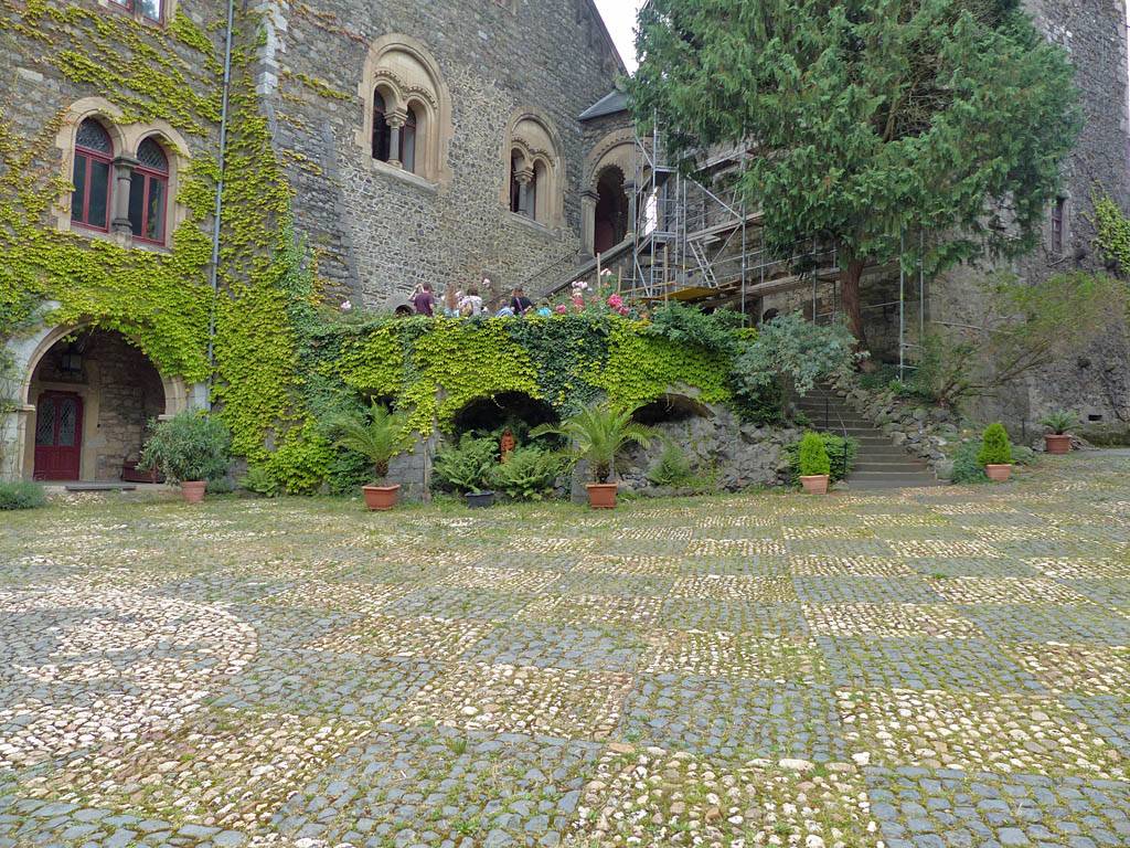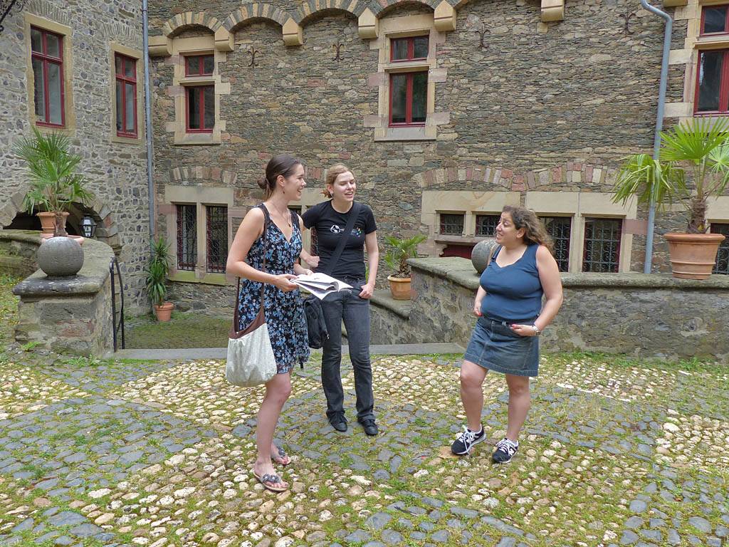 The lion at the centre of the courtyard. | Silvia, Dagmar and Renée. | More views as we head to the entrance by the older tower (with the scaffolding). |