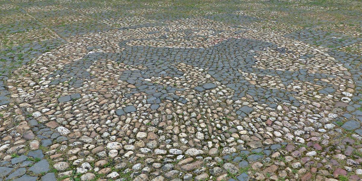Looking around as we head to the central courtyard. | The gothic tower. | The cobbled ground of the courtyard looked like a chequerboard. |