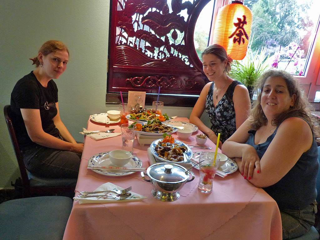 Arriving at Tong Tong chinese reataurant. | A golden laughing buddha at the entrance. | A quick photoshoot when the food arrives before we tuck in. |