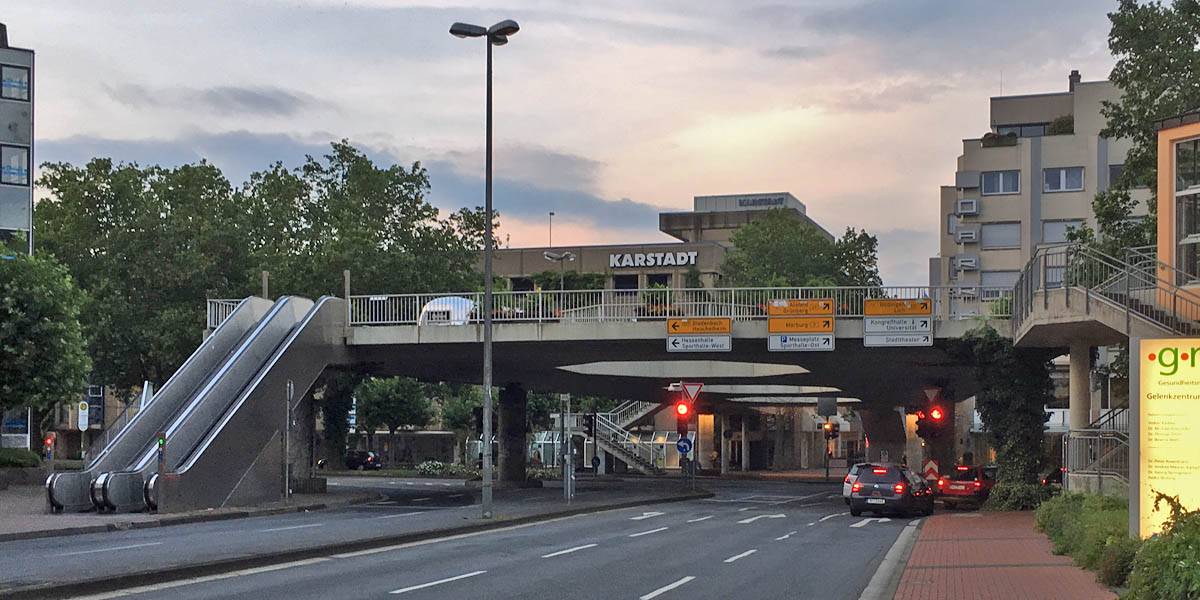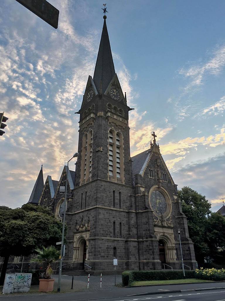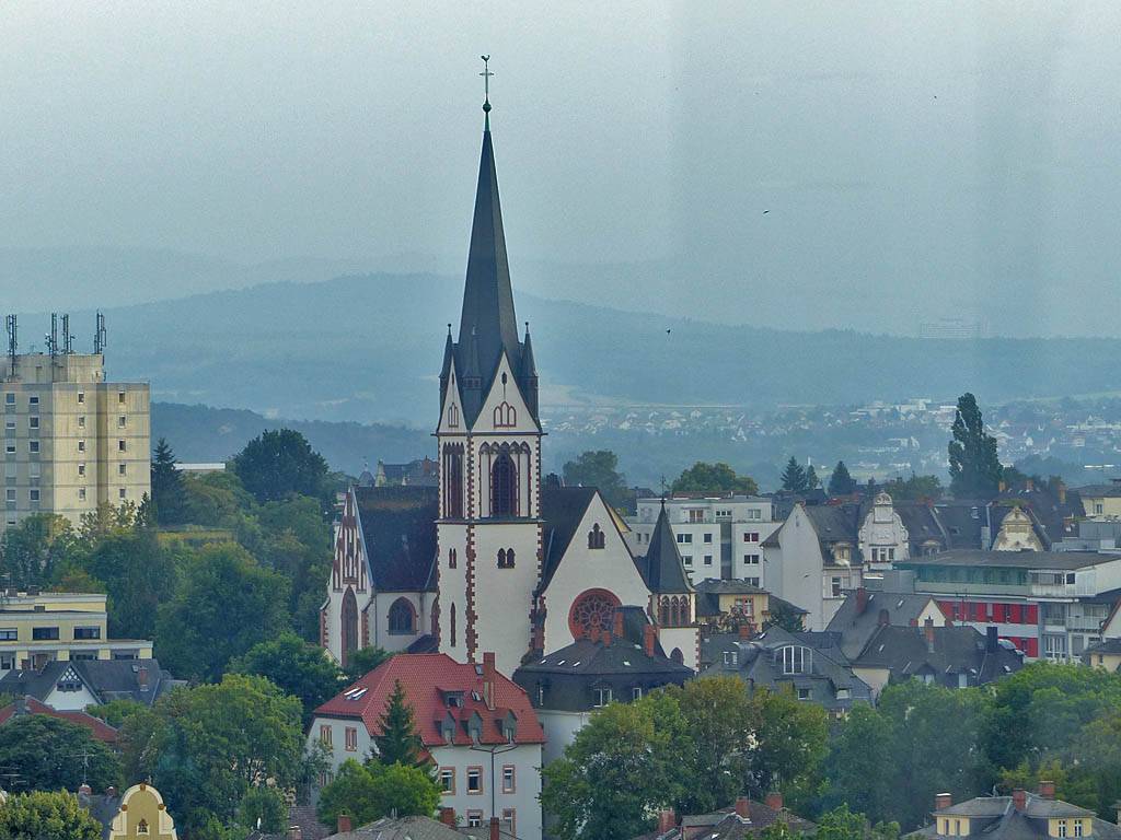 Two spired buildings in Giessen. TODO: Identify | Enjoying sky bar drinks. |