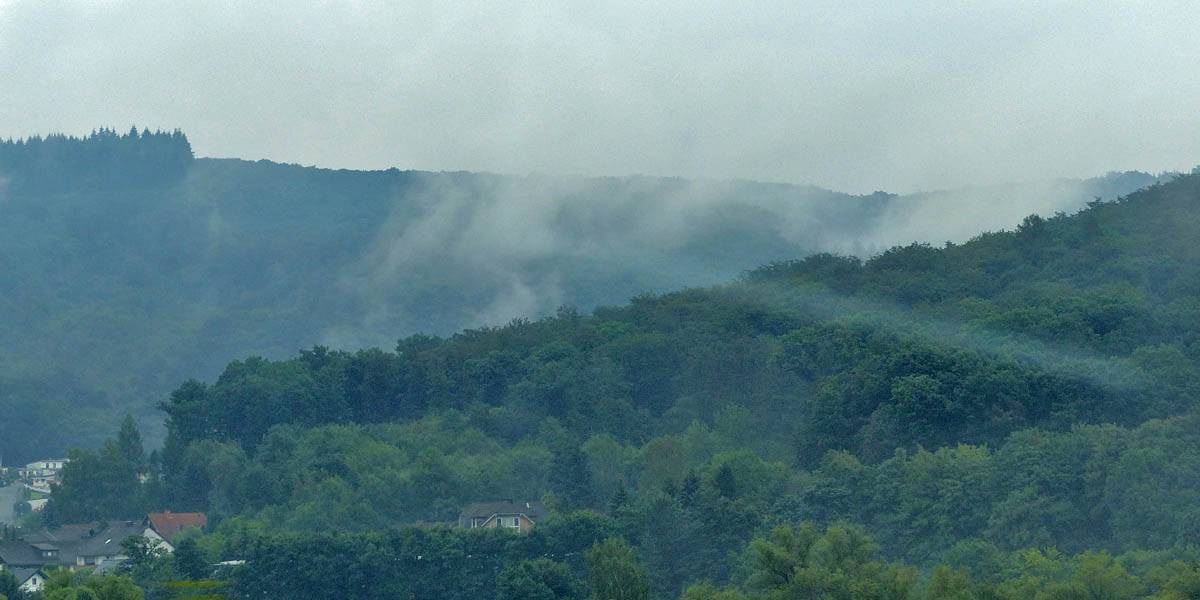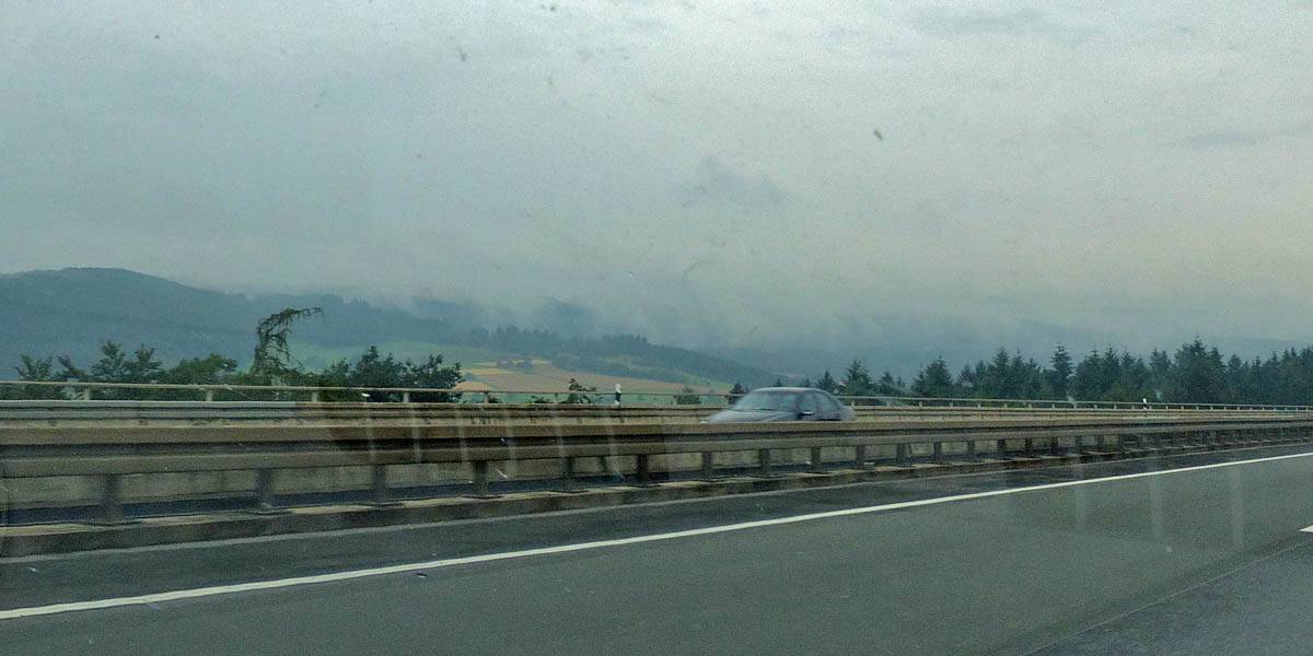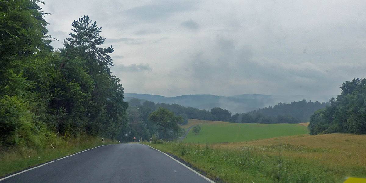 Low clouds hug the hills as we drive North on interstate 45 then off onto local roads to the village of Erdbach. |