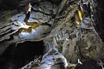 Yet more interesting and varied formations. | This one looks like a pair of alien claws are trying to force the crack open. | A wider view of this part of the cavern. The cracks in the ceiling are quite prominent. |