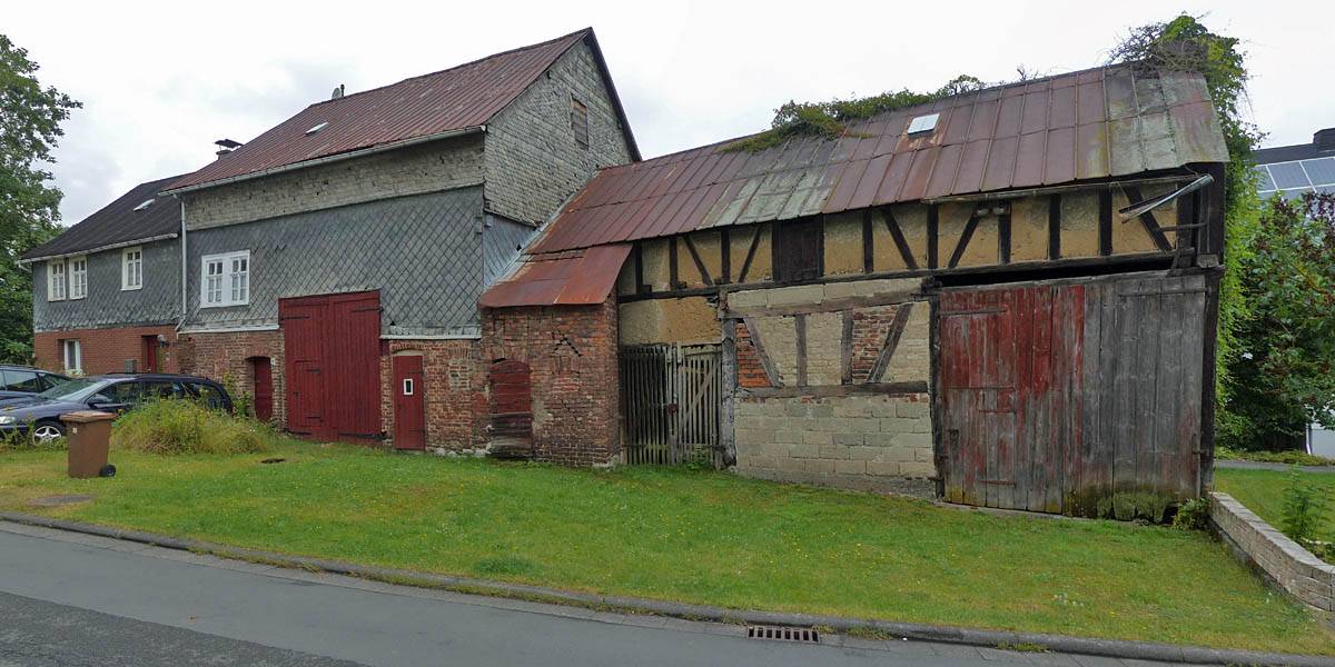 Exiting through a car park below a cliff. | Returning to Erdbach and back to the car. | This building looks like it's seen better days. |