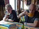 I also helped Dagmar pick raspberries and gooseberries. Then at 4PM I went in for a tea break and toast and switched to jeans. Renée was asleep so I woke her up at 4:45PM ready for our evening excursion.
