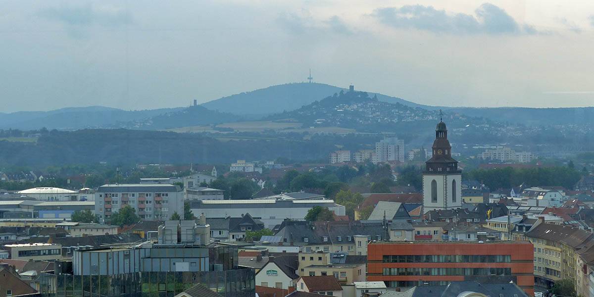 Looking South and Northeast from the sky bar. | Some views of Giessen and the surrounding area from the sky bar. The hill with the mast is to the South. |