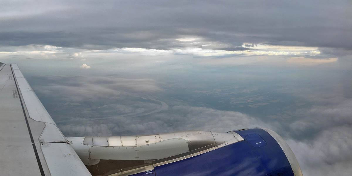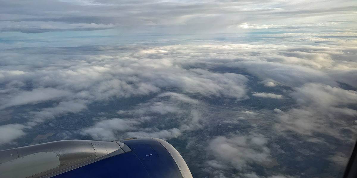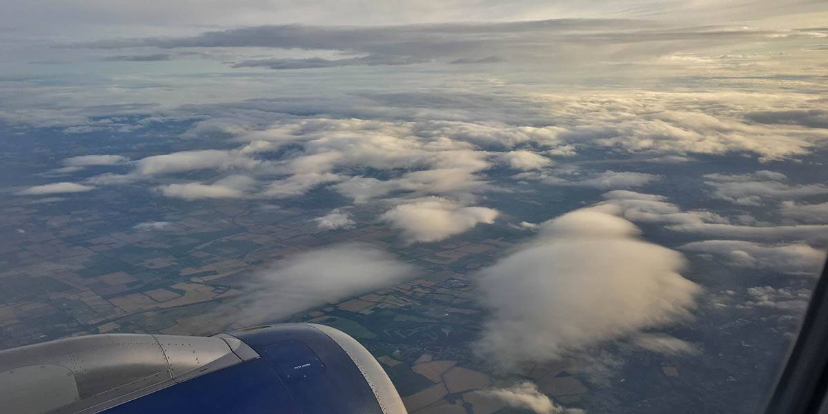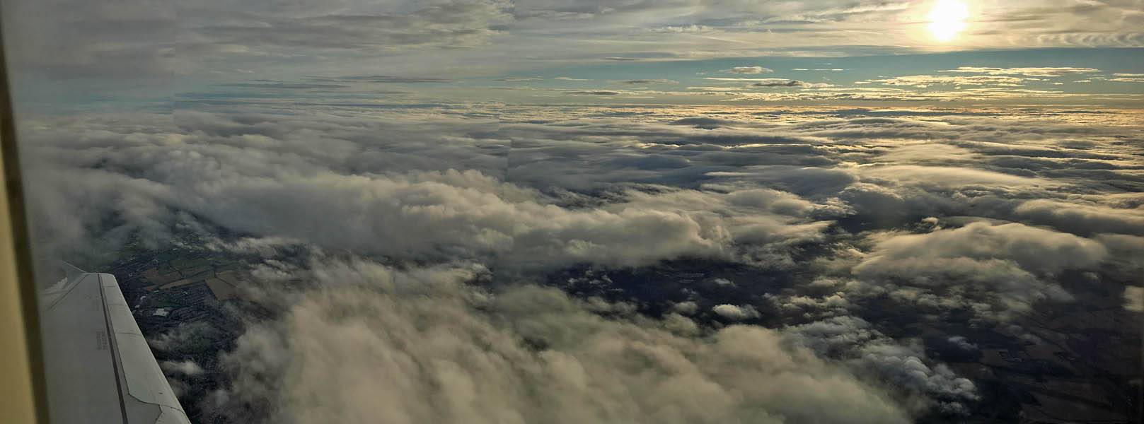 Southend including its famous mile long pier from the North. | As we descend over North London the cloudscape just gets better and better. Lots of low cloud hides a spectacular wavey cloudscape from those below. |