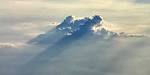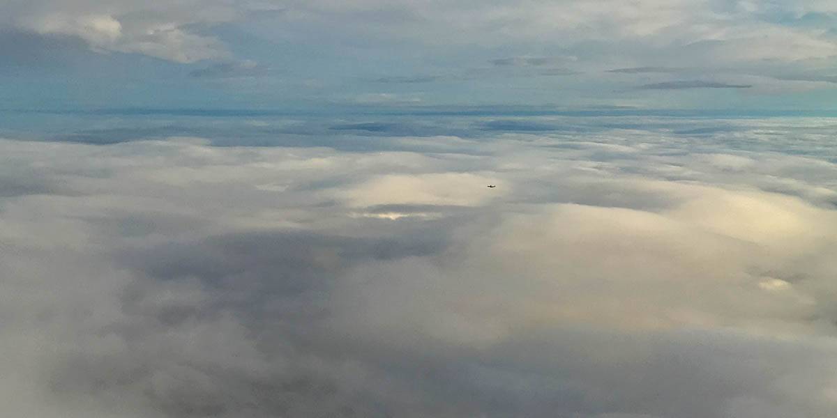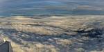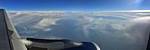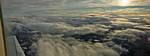More remarkable wavey cloudscape as we circle around allowing me to look into sun more. | Another aeroplane looks tiny against the big cloudscape. | More remarkable wavey clouds as we circle then descend into Heathrow. |