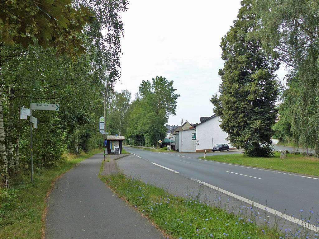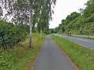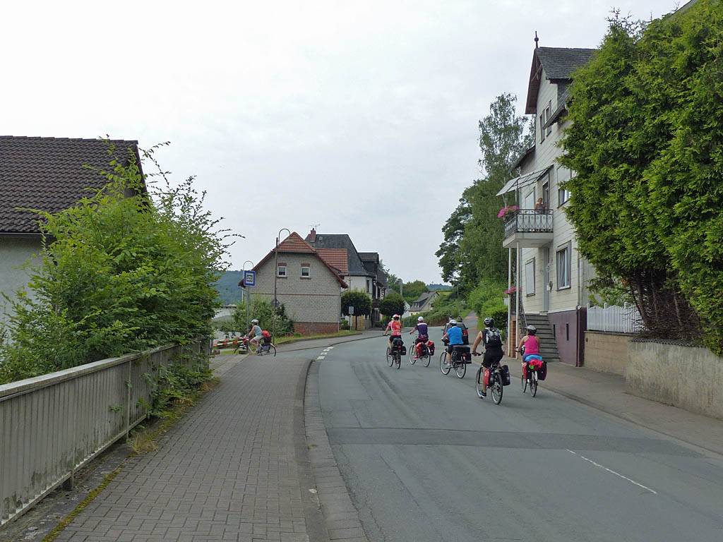 Cyclists enjoying the quiet road through Stockhausen. | A nice Stockhausen building and flowers. | Walking towards Biskirchen. | A Ringlet butterfly. |