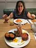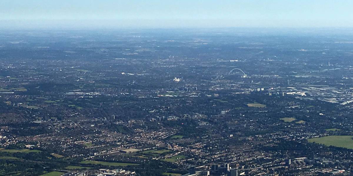 What better way to start off a holiday than with a nice cooked breakfast! | Views of Central London soon after takeoff from Heathrow. | Wembley Stadium to our North. My home should be down there somewhere in the distance. |
