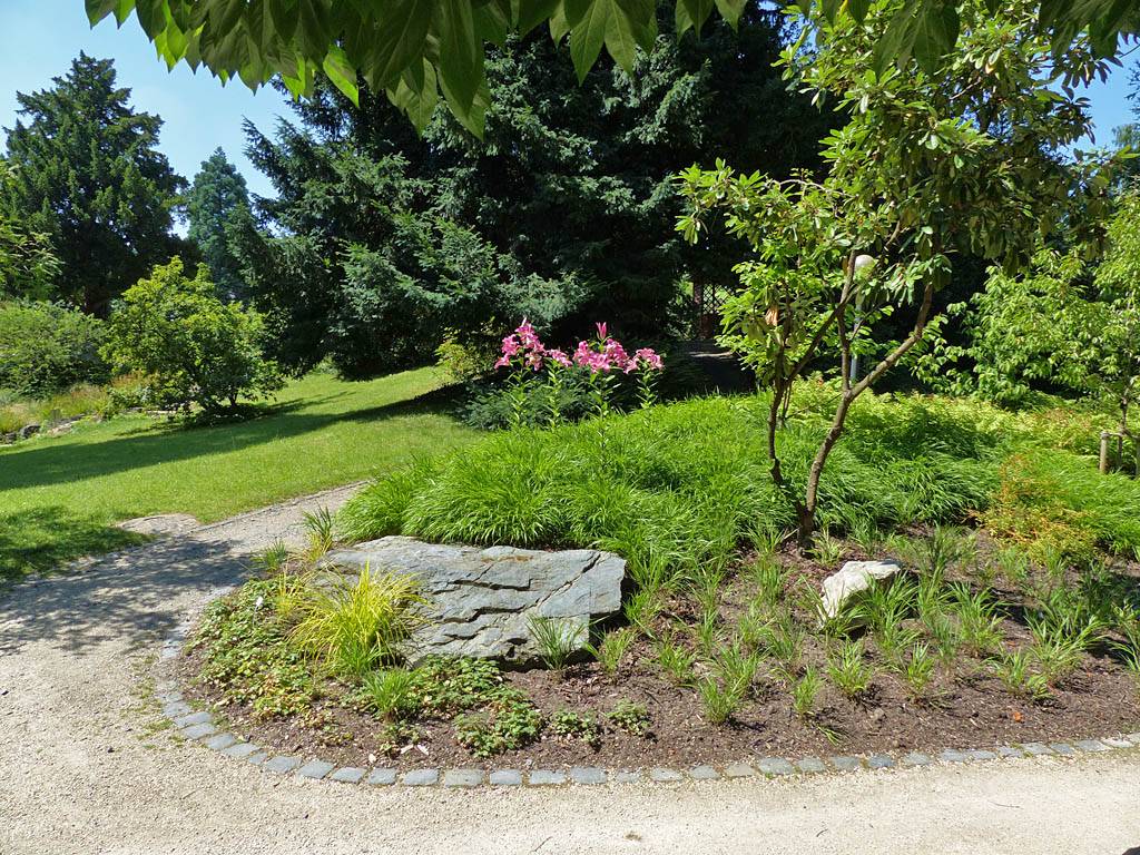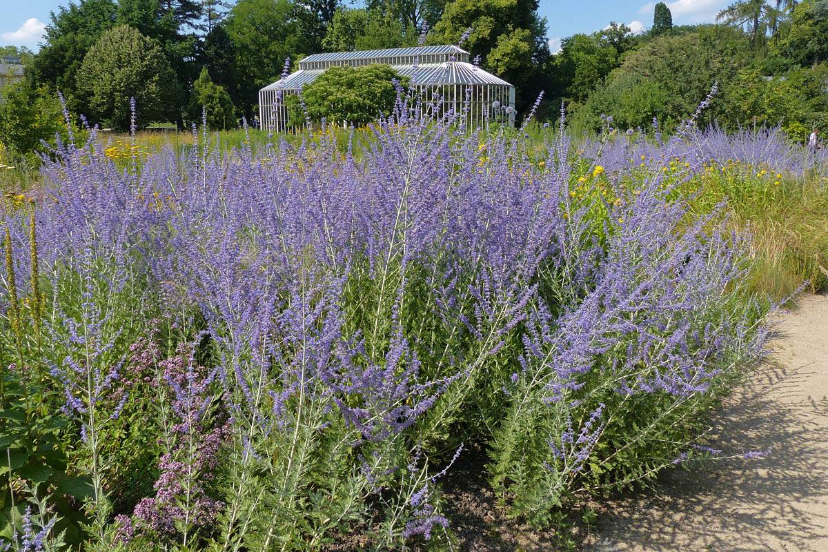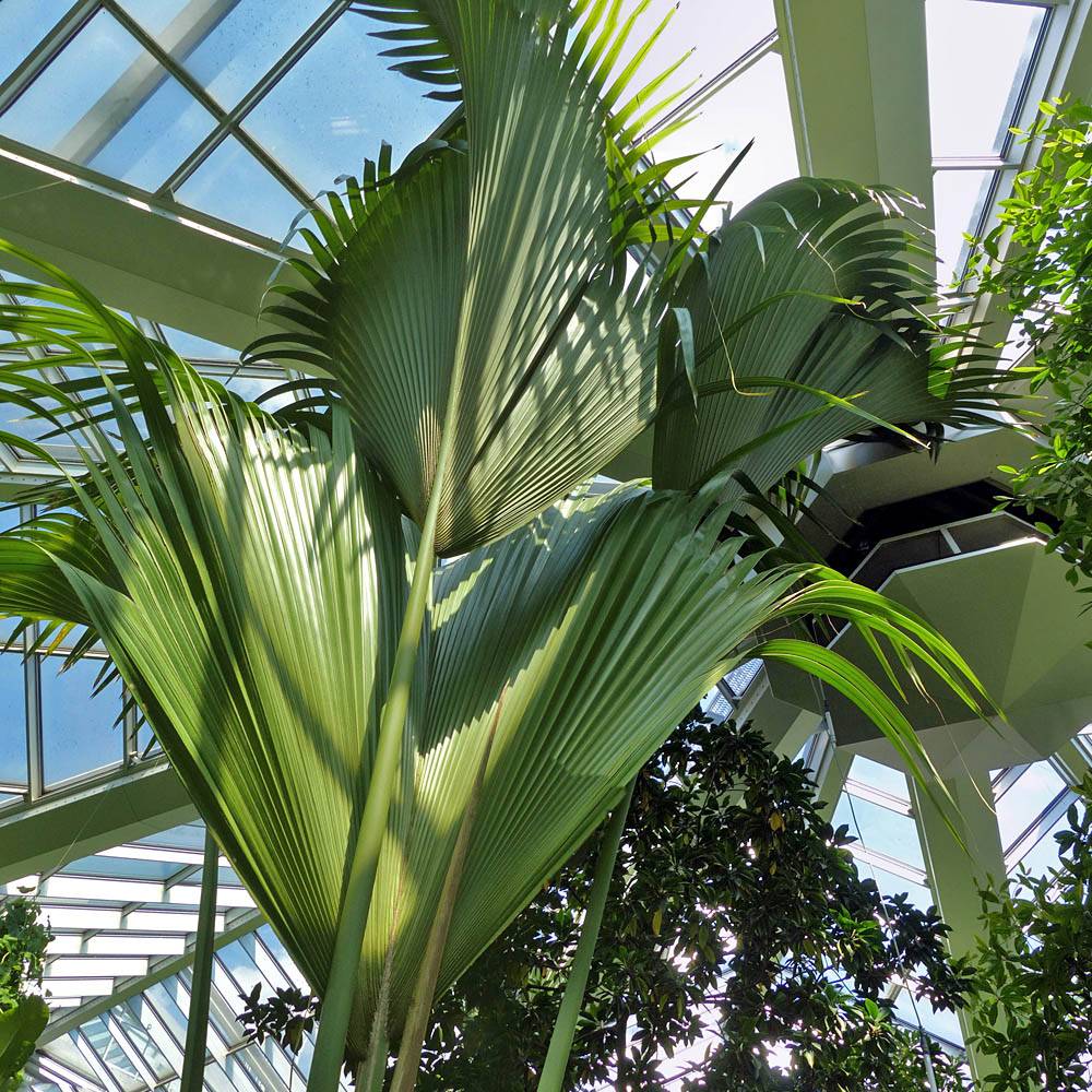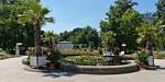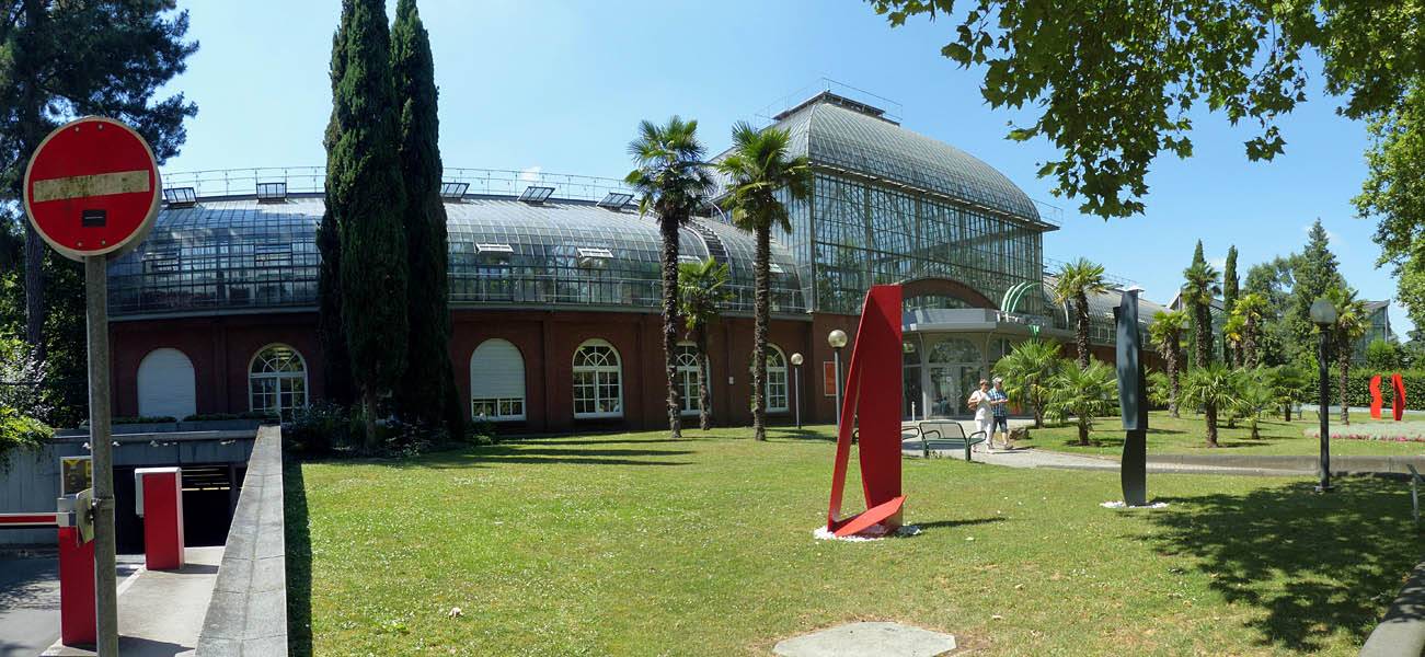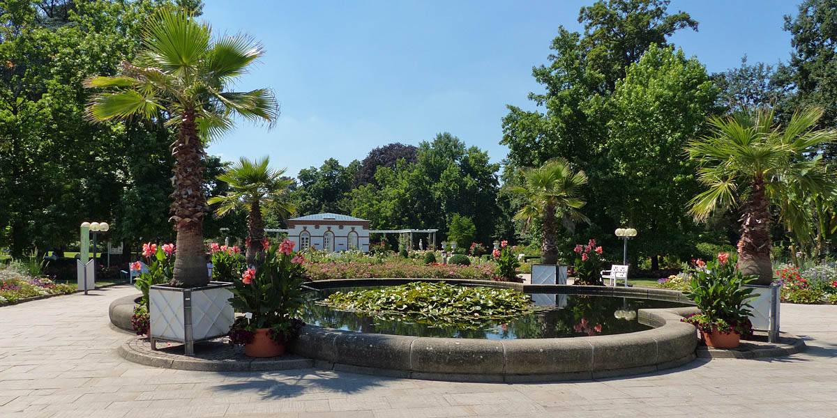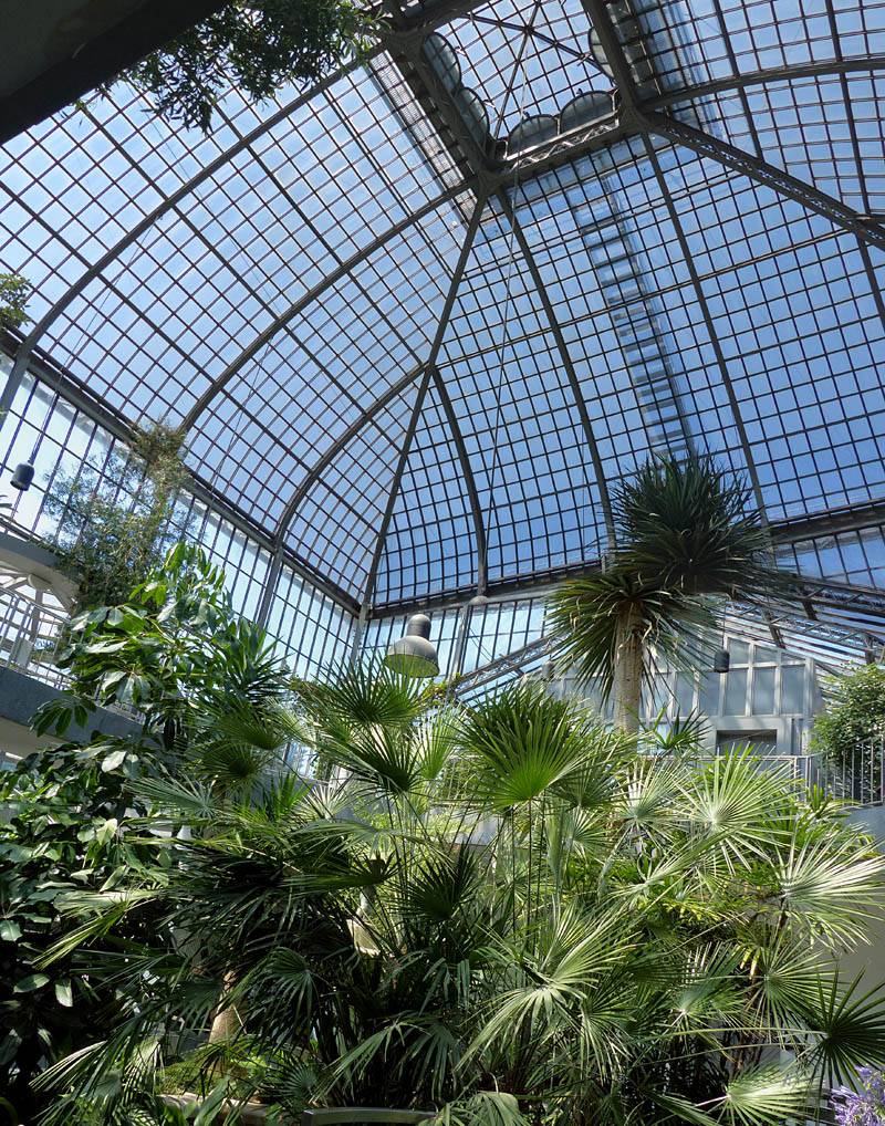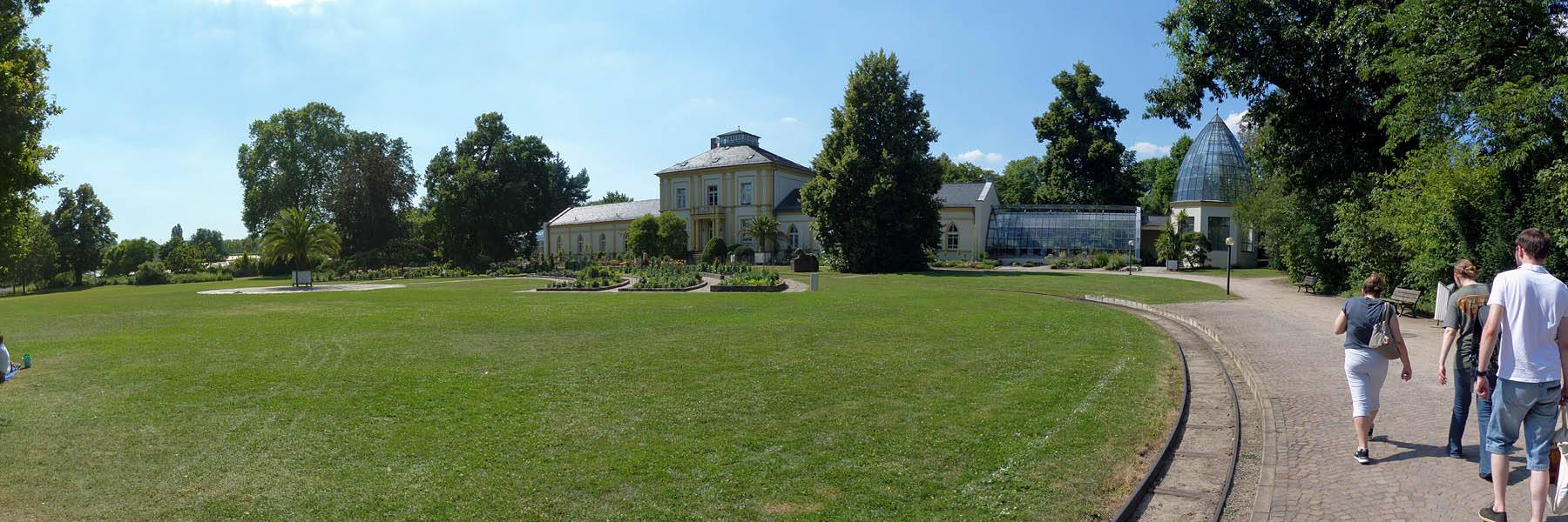The botanical garden East entrance. | Inside the entrance greenhouse. | Looking West to the Roase Garden just inside the entrance. | The arid tropics tropicarium greenhouses. | The Oktogonbrunnen fountain. |