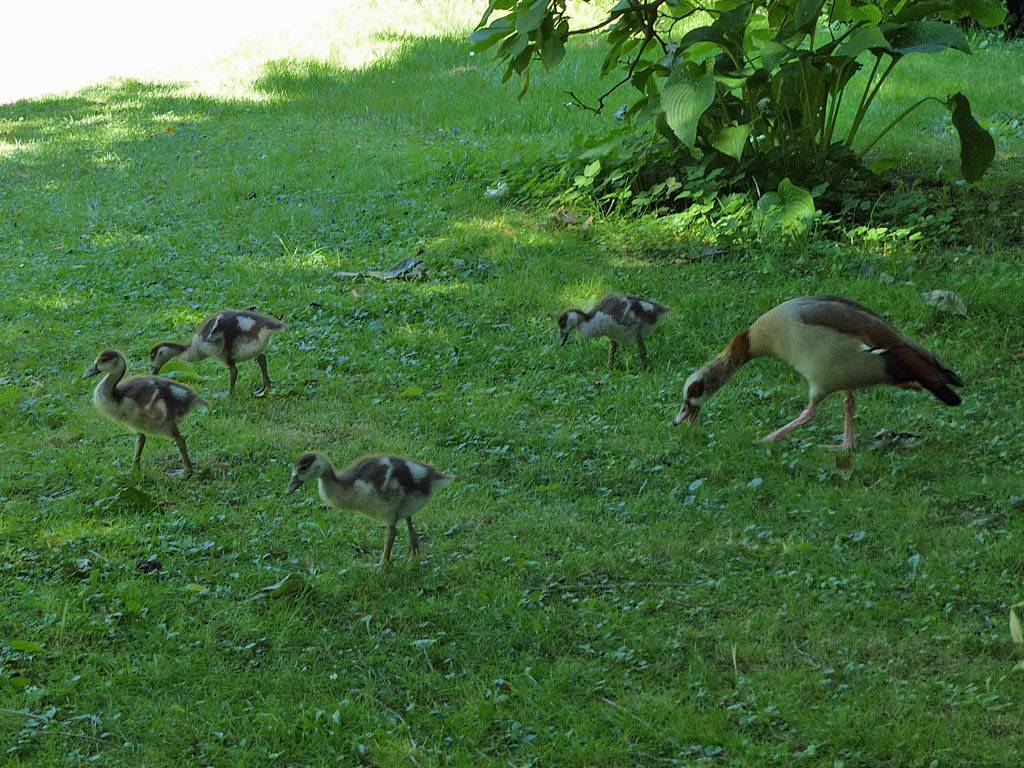 Lilly flowers across the path. | As we walked on from our picnic we found the Egyptian geese in the nearby lake in the Southwest corner of the garden. | What has Stephan spotted? |