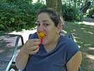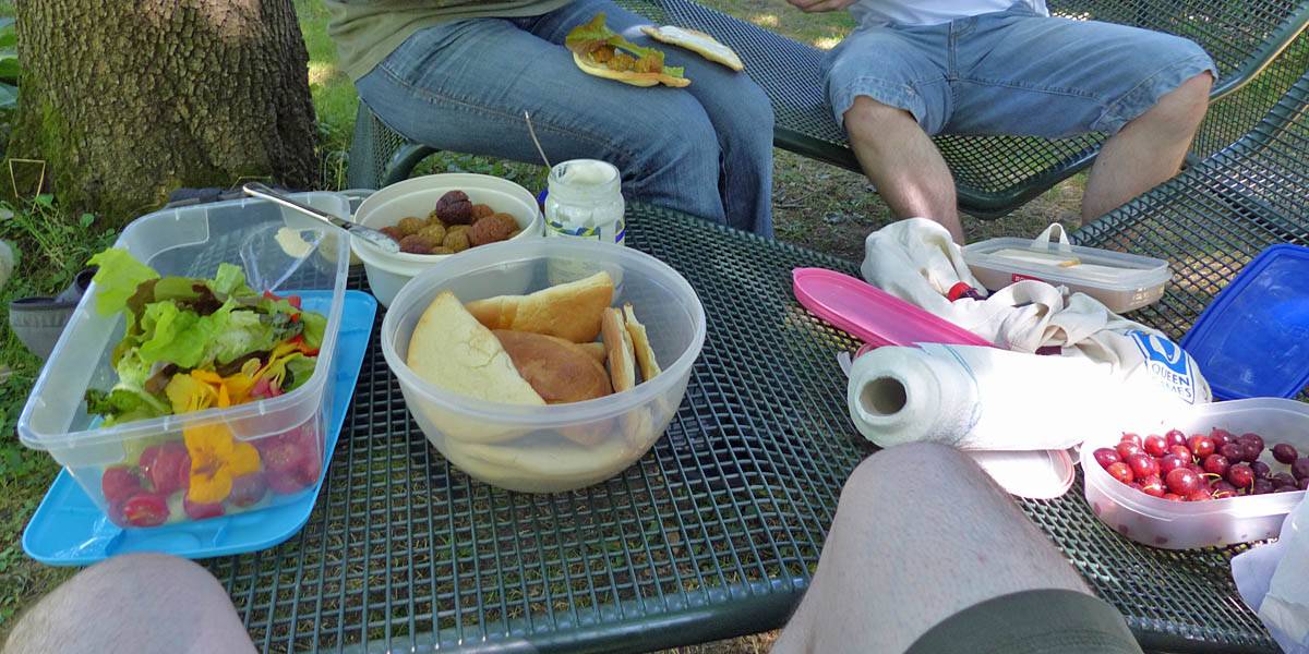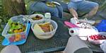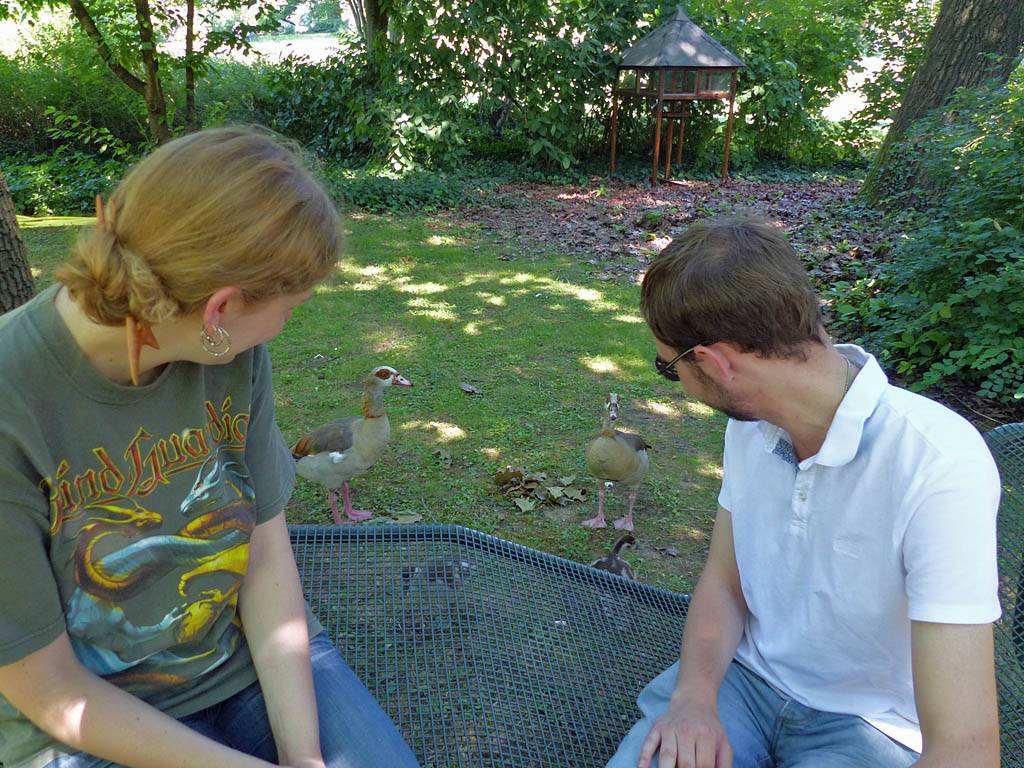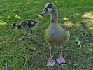 Egyptian geese at the picnic. | Picnic closeup. | Playing with our food are we? Those nasturtium flowers were edible and delicious. |