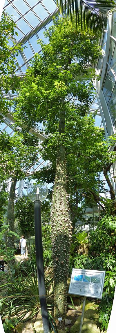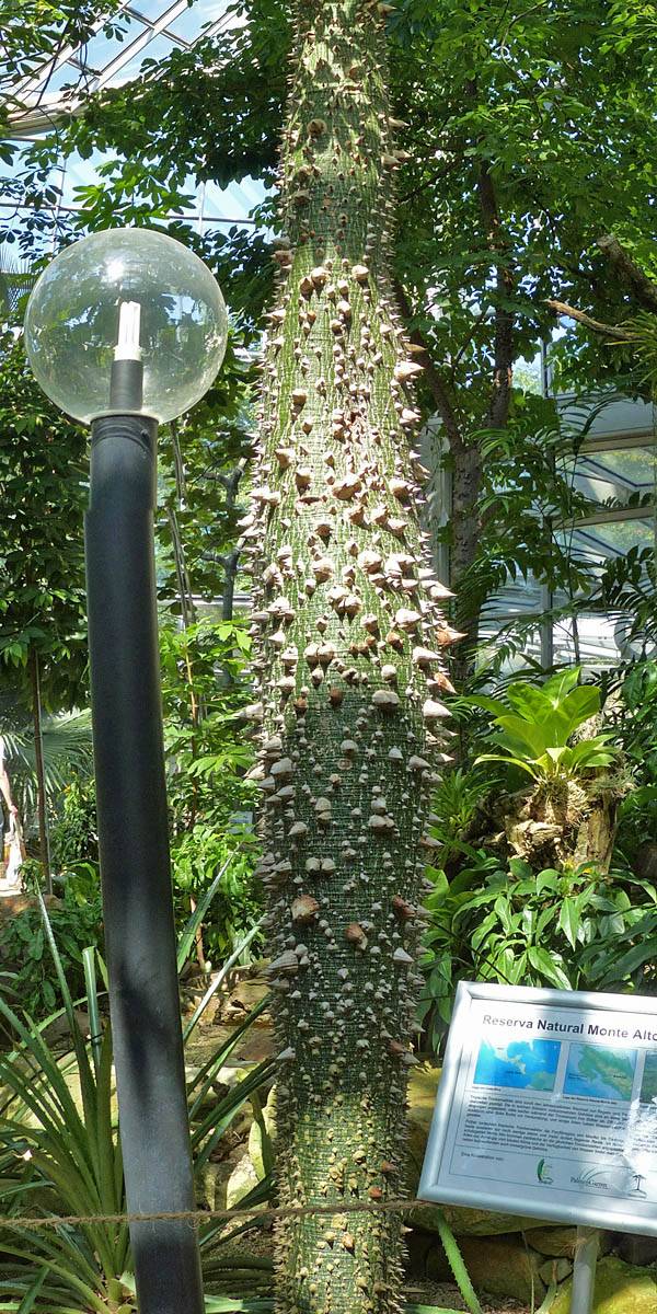 Inside the arid tropics tropicarium are lots of large and very spiky cacti. | This tree has an incredibly spikey trunk! |