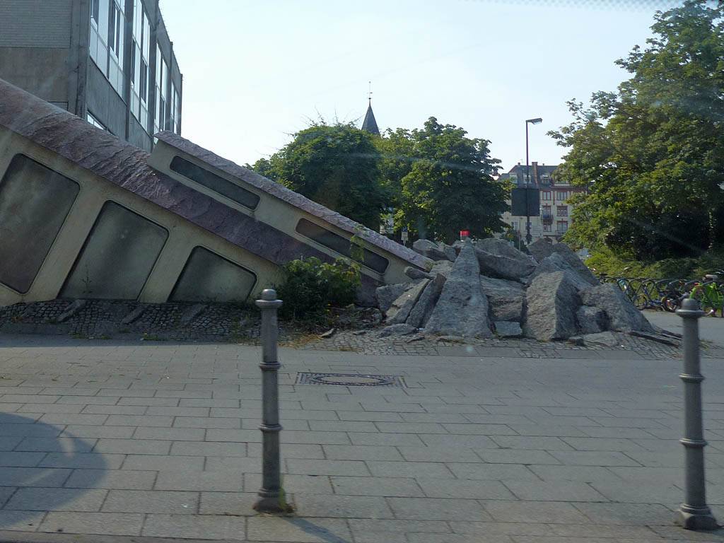 Renée passing a massive bamboo stand as we head towards the exit. | This is the coolest subway entrance in Frankfurt. It looks like a train carriage bursting out of the ground at the junction of Bockenheimer Landstrasse and Senckenberganlage just Southwest of the botanical garden, and connects to Bockenheimer Warte station. | Looking West along Bockenheimer Landstrasse towards Bockenheimer Warte. |