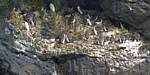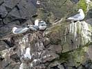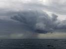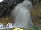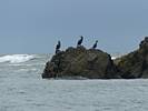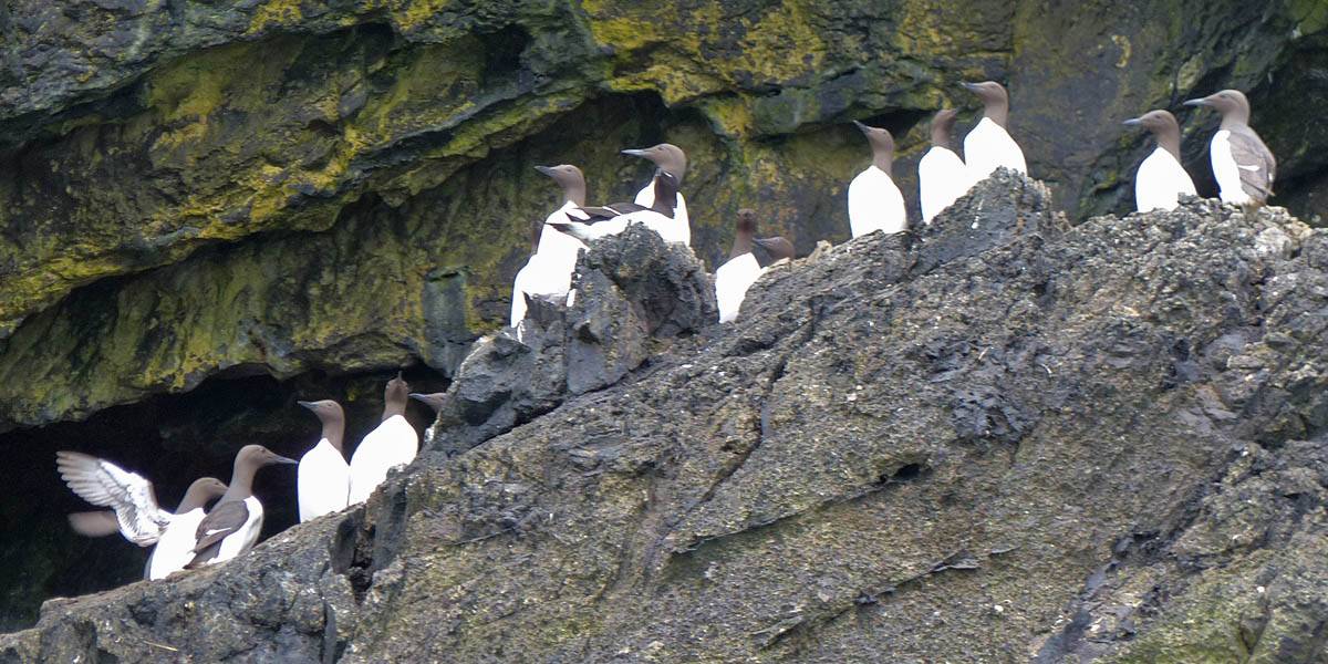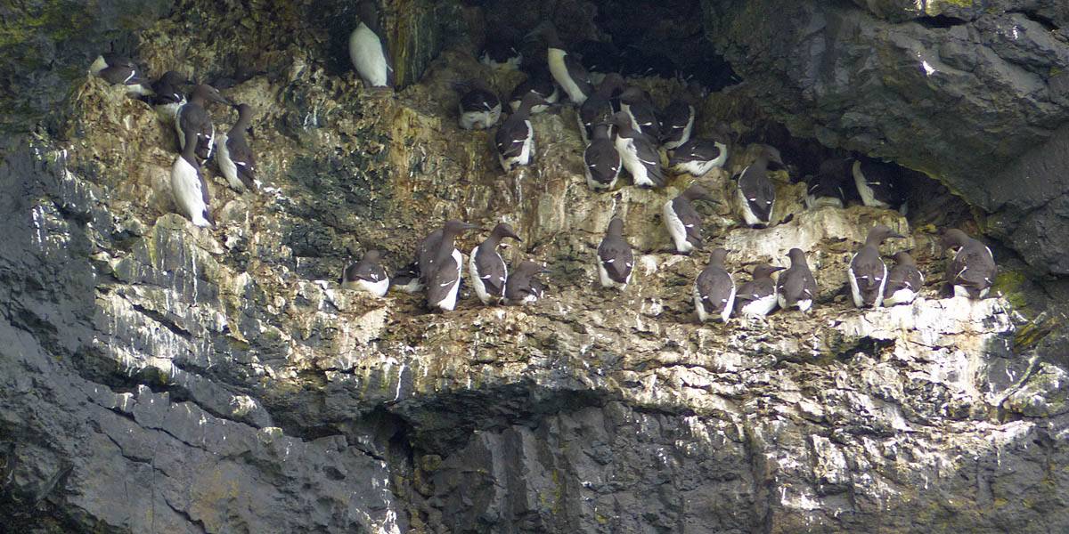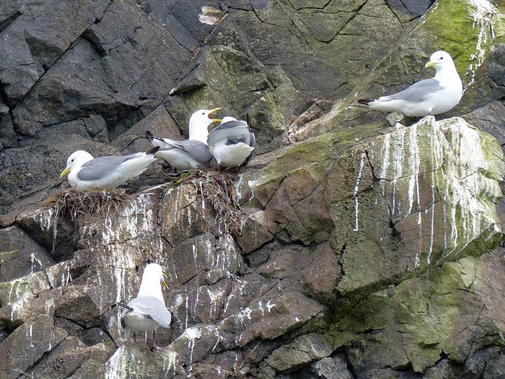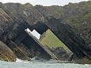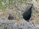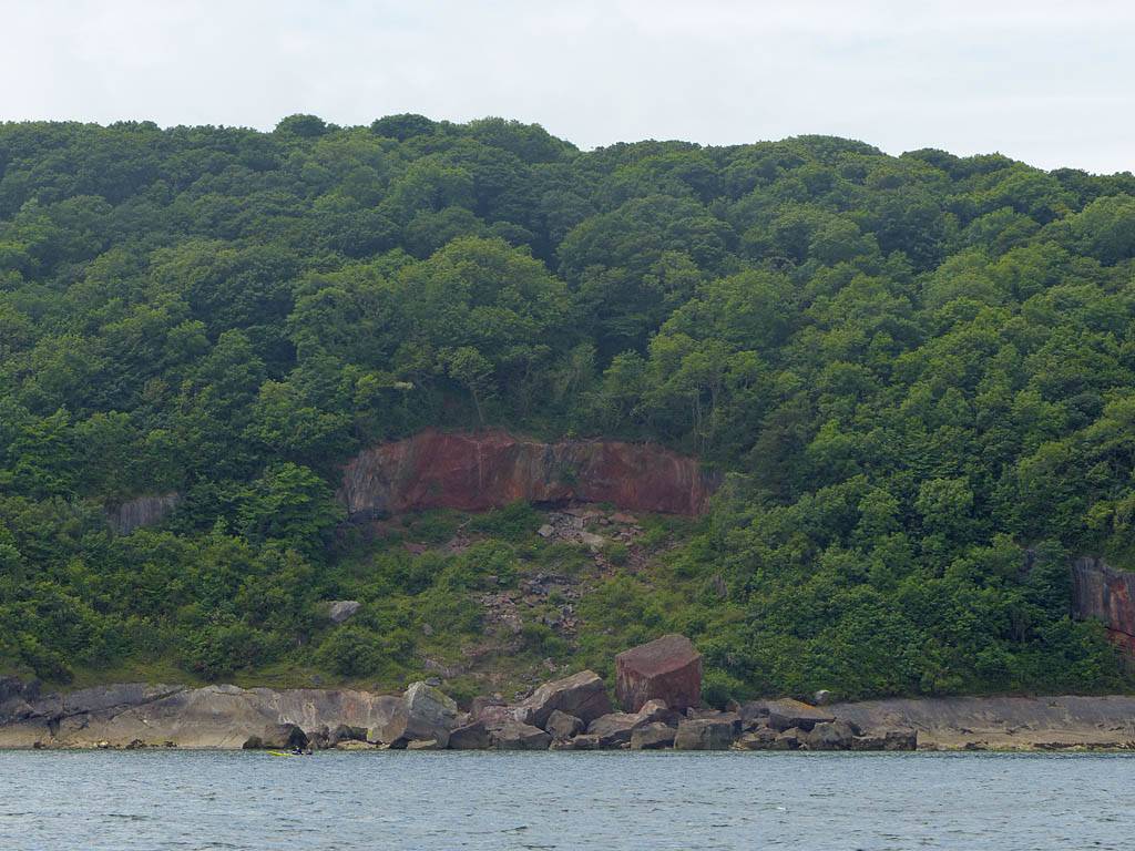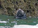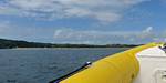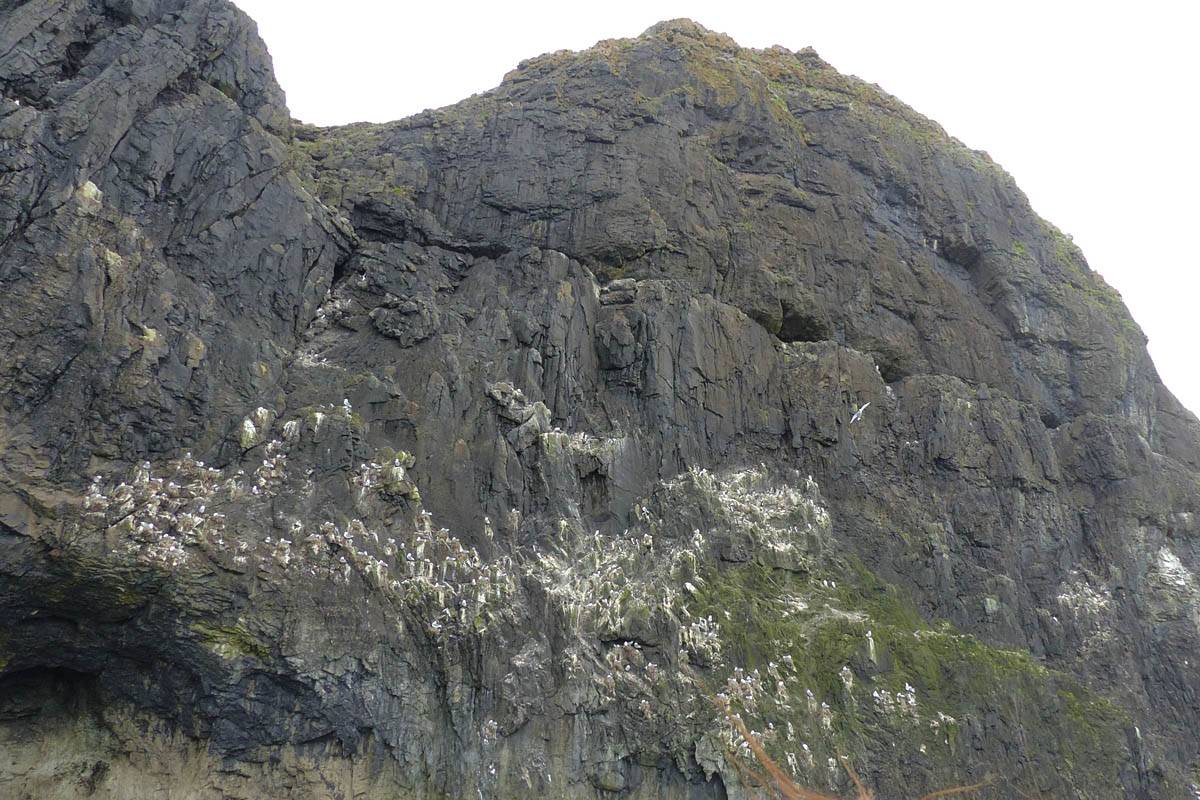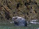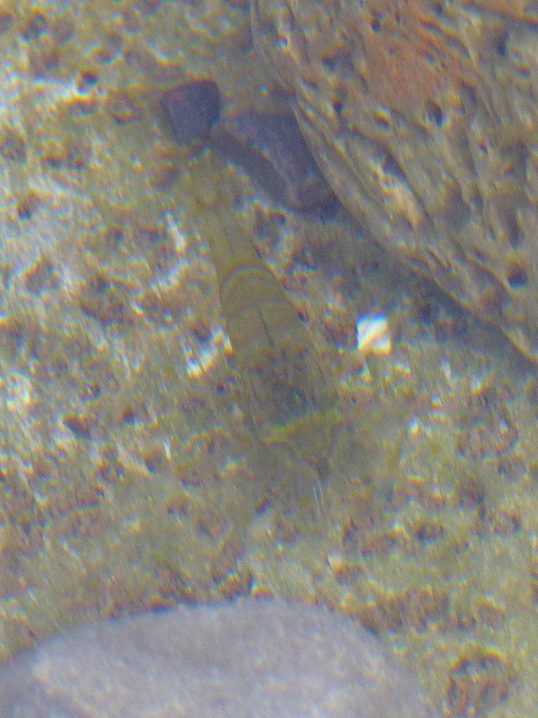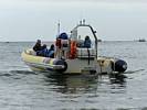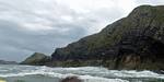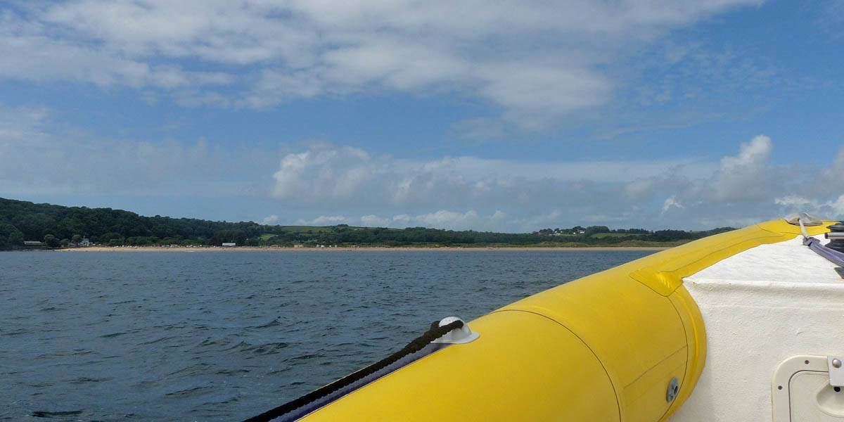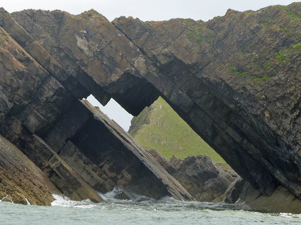At 11AM with everyone gathered the briefing started. We were given extra fleeces and waterproofs to use as well as life jackets. Then we went to the water's edge to wait for the boat. Early sunshine had gone for now as showers passed nearby. But luckily they didn't reach us. We had fun paddling until the boat arrived just after 11:30AM. We soon boarded and were on our way. The bay was fairly calm but once out into open water it was rather choppy and rough. We battered our way through the waves a fair way from land and after a pause near Port-Eynon Bay we eventually reached and encircled Worm's Head, having gotten a soaking from the spray on the way. On the lee side it was much calmer and we could enjoy the bird colonies on the cliff faces and seals in the water. A blow hole also made for a spectacular show. By now Renée wasn't feeling so good. Soon we crossed over the top of the causeway as the water rose towards high tide and followed the coast back to start. Alas Renée succumbed to the conditions and let go of her breakfast. No problem as the skipper sloshed it all off the boat with sea water and noted that someone has to feed the fish! Back in Oxwich Bay we paused at a lobster pot where a large Spider Crab and a Hermit Crab were shown to us. Then much to Renée's relief we returned to start and disembarked at 1:25PM. It was a fun ride but conditions were a tad bumpy.