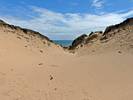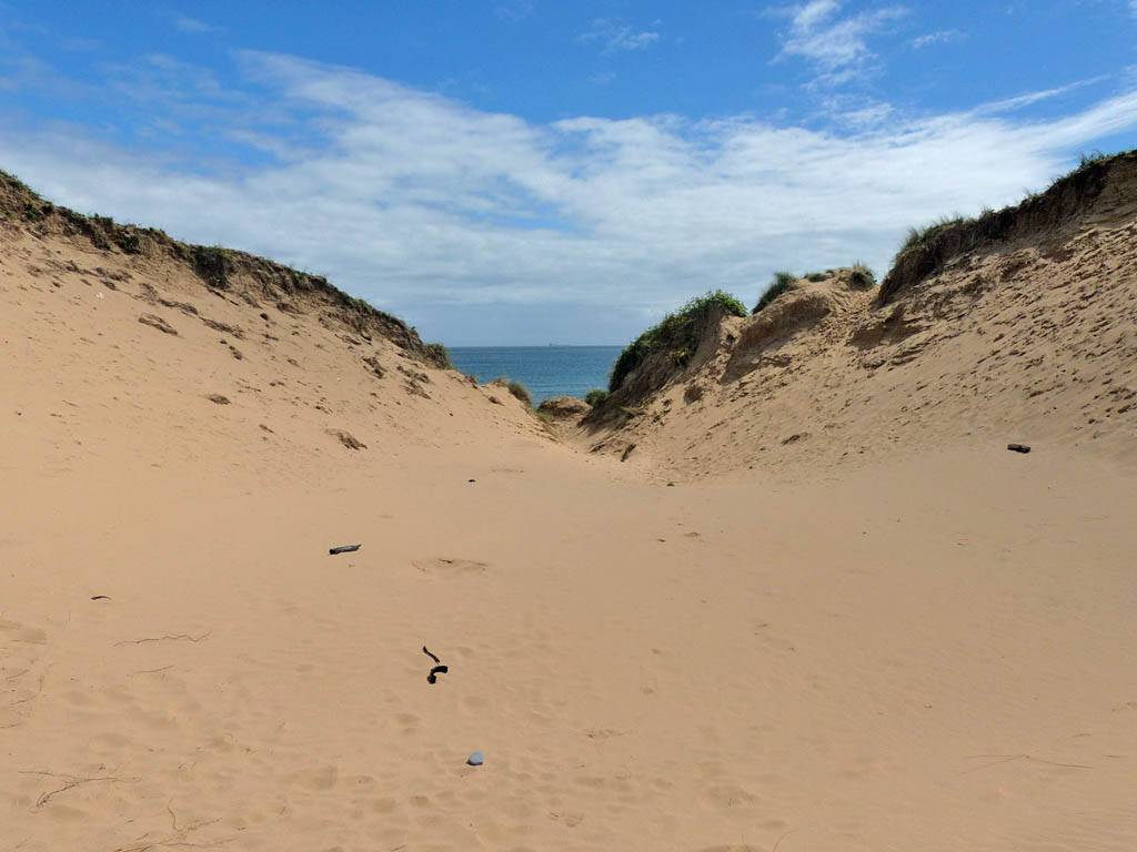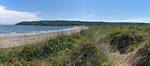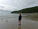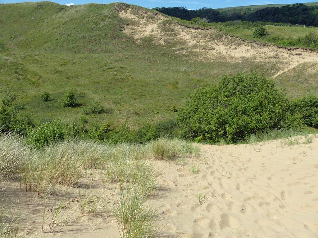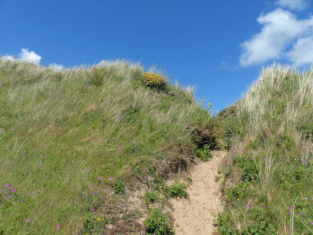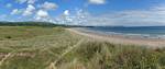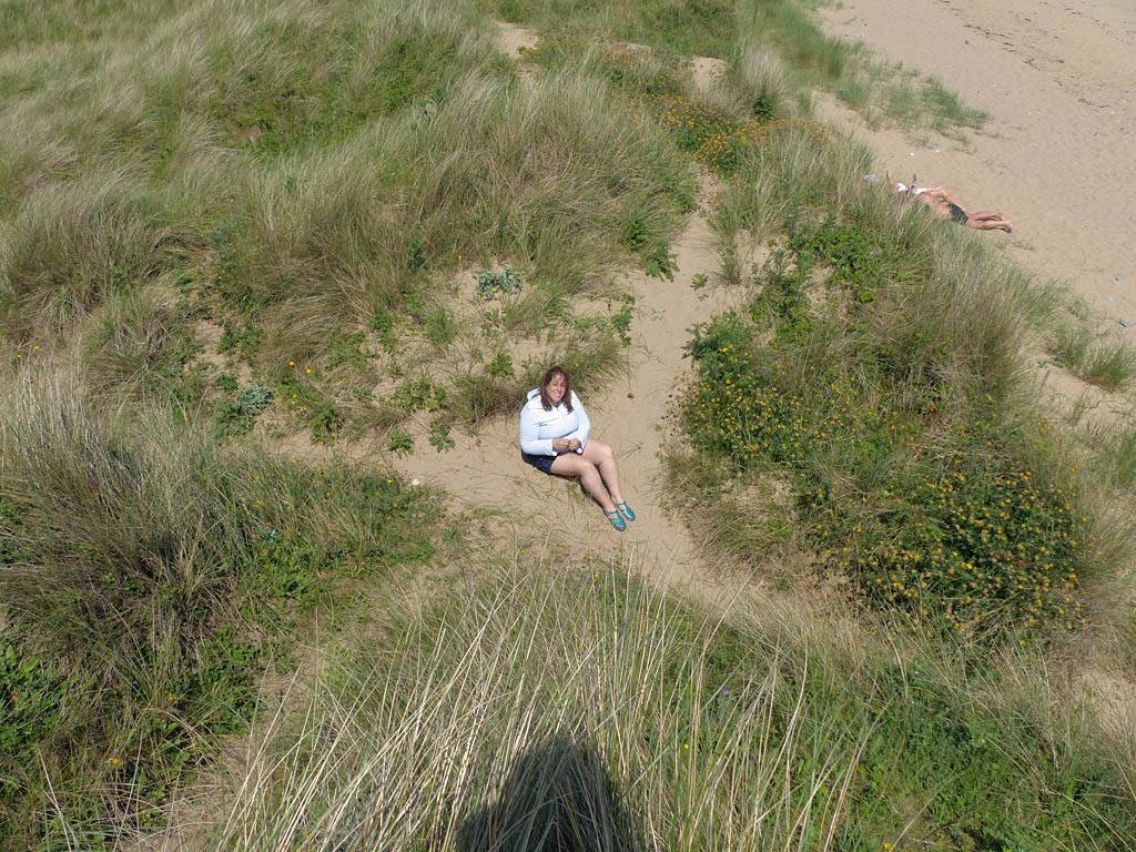 After walking up the beach (not so far at high tide) and returning our borrowed gear we returned to the car to rest a moment. I got Renée some water and some Eccles Cakes also helped. Once she felt better and warmed up we went for a walk Eastwards along Oxwich Bay. It was a pleasant walk as the sun had returned and it was warming up nicely. We paused by a Dune out of the wind so Renée could bask and warm up further. I paddled for a bit too in my wet water shoes. Once Renée had had enough we returned. I couldn't resist exploring the dunes while Renée went on ahead to the car. Soon enough I got back too and we left at about 3PM to return to the Inn.