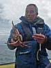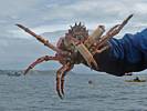 The captain showing us a King Crab and a Hermit Crab from a local crab pot. |