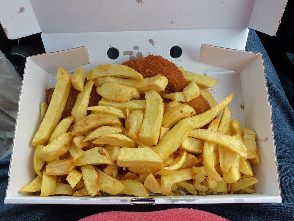 At 6:25PM we drove to Chips Ahoy, arriving at 6:40PM. The Weather was glorious. I saw a big bird of prey near Burry Green swooping down but failed to get a good enough view to identify it. At the chippie there was a big queue as expected, but it was worth the wait. We ate in the car and it was delicious!