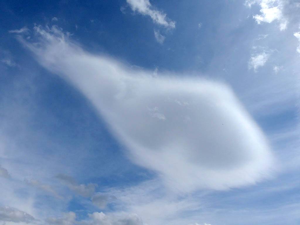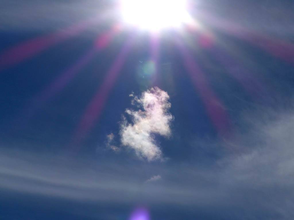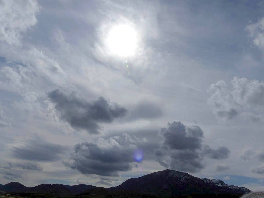 Wave bar in front of the sun with irridescance. | Cumulus over Cuculo. | More cumulus and wave bars as top cover comes and goes. |