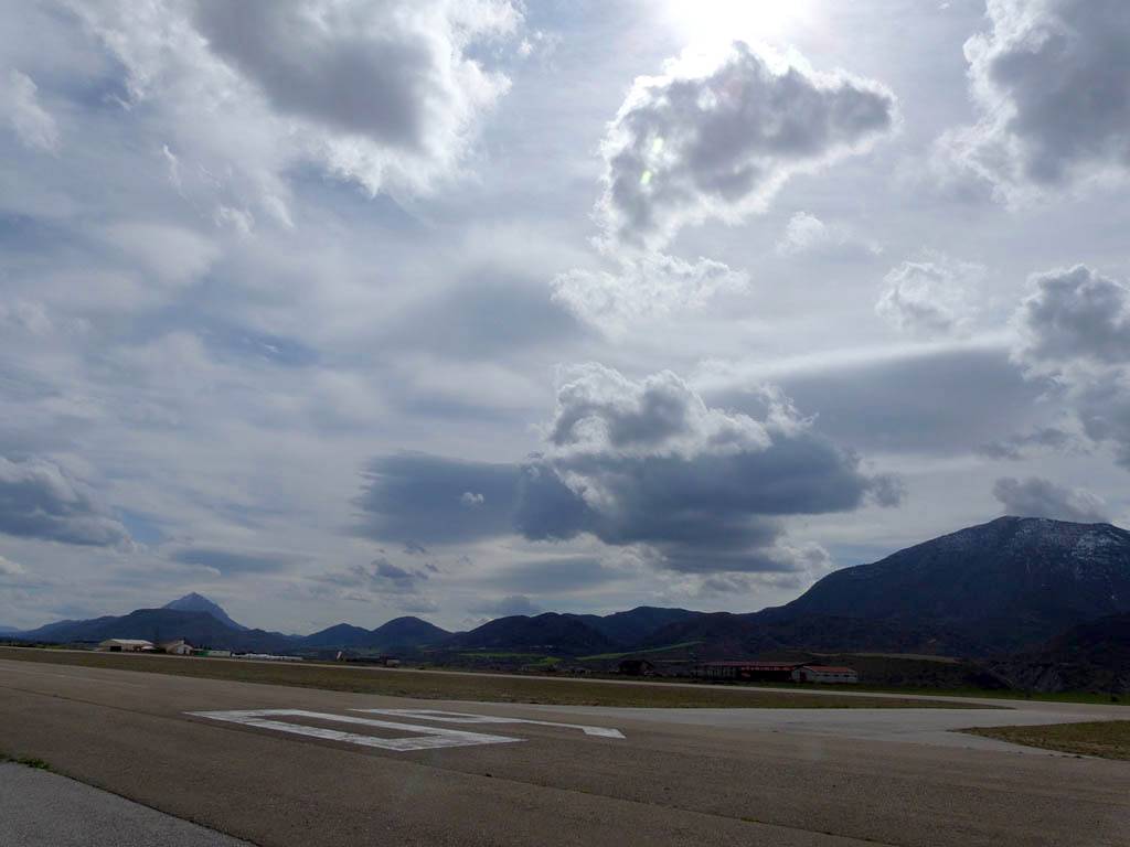 When I got up it looked cloudy out the window. A slow start was expected today. I was also the no 3 today so I didn't really expect to fly. But after the last two days' flights I didn't mind. I'd gotten the best out of the two best days. At the airfield at 10AM the sun was starting to shine as the early cloud burnt off. A southeasterly wind had set up and I could see wave bars in places. The plan was for Mike T and Jon B to go up with John and Ayala and Richard to go up with Bob, and I was the floater. In the briefing we were expecting thermals and wave today. There was low pressure moving in over Portugal influencing the weather now. The gliders were taken out after briefing and were lined up on runway 09 by 11:45AM. A fresh Southeasterly wind was blowing and cumulus and wave bars jumping around aloft. A large group of vultures were soaring nearby and cloudbase was above the summit of Cuculo.