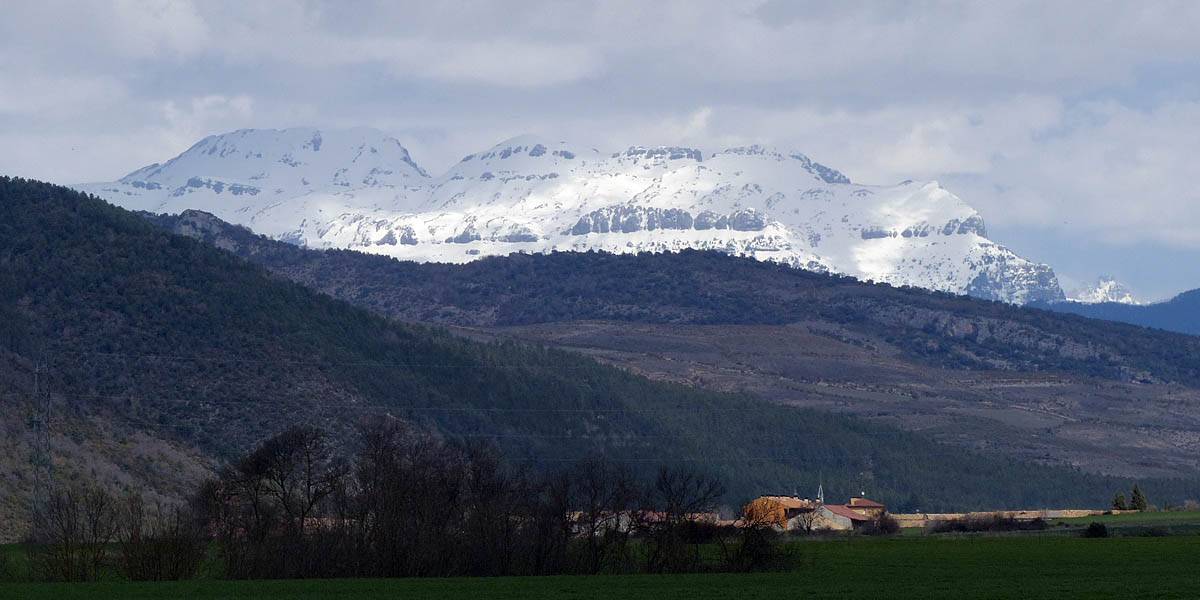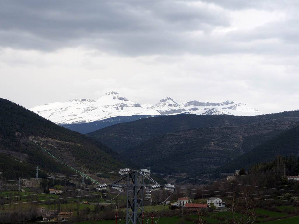The Rio Gallego somewhere Northwest of Riglos. | The first views of the Riglos sandstone cliffs. | Approaching Riglos from the Southwest. |
