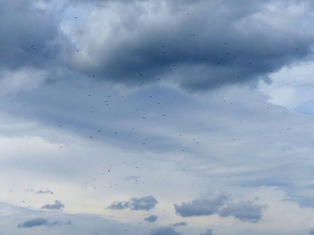 Thicker top cover coming in. Nice wave bars. | Looking North towards the mountains which are clear of cloud. | A gorgeous wave bar high above. | A huge flock of many vultures. |
