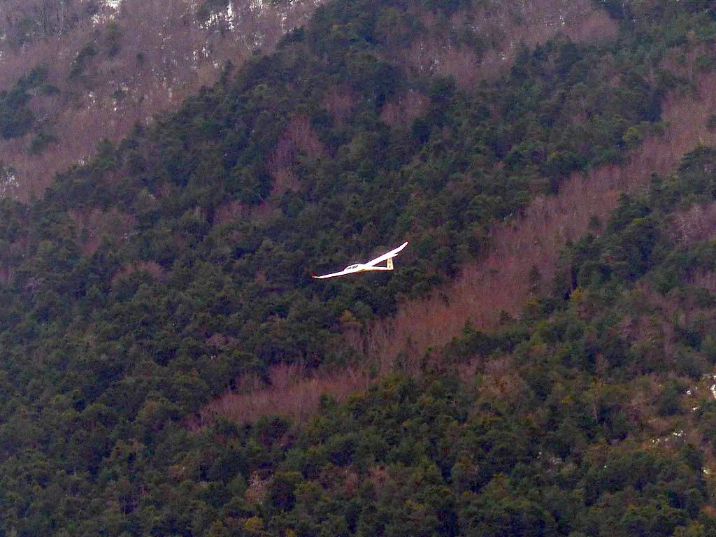 A closer look at some of the vultures. | Another nice panoramic cloudscape to the North. | 776 rapidly descending the downwind side of Cuculo! | 775 scratching away at low level in weak lift. |