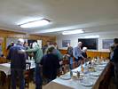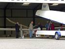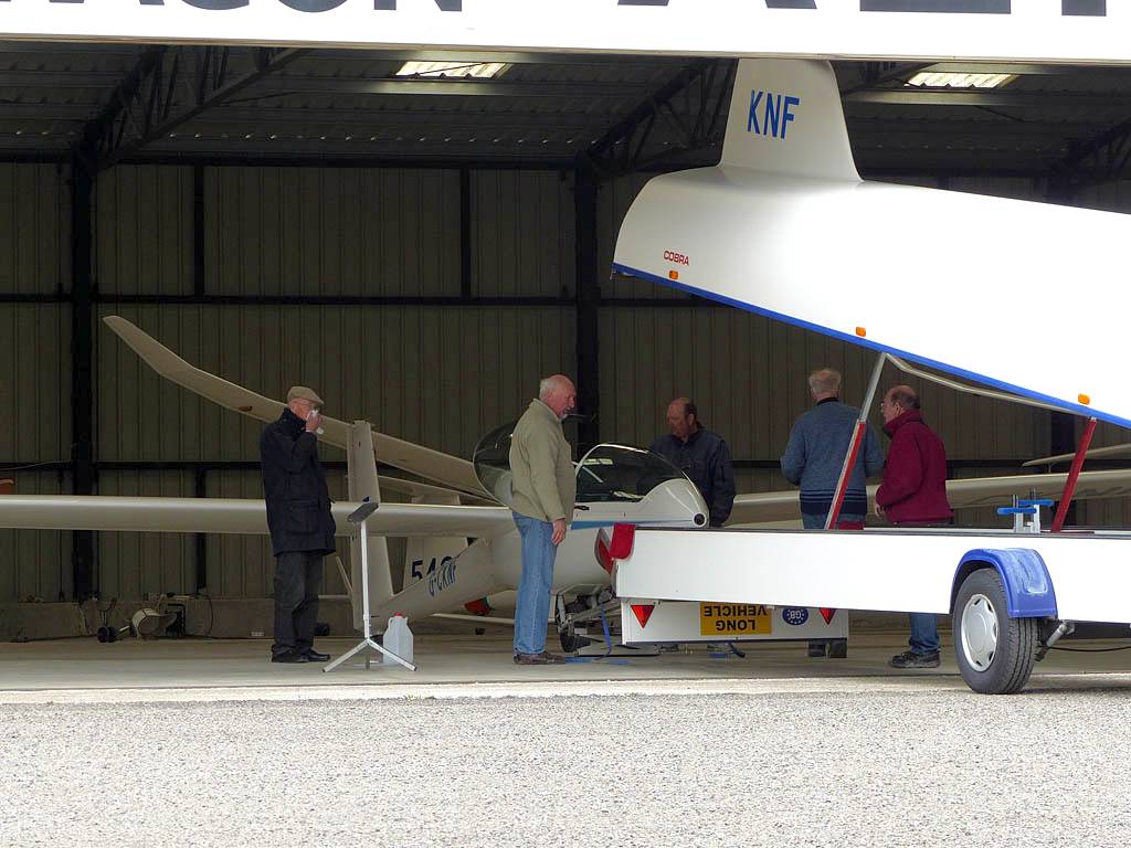 I was feeling very tired this morning. I guess that's a function of eating so late in the evenings and earlyish starts. I made sandwiches and studied the map I bought, thinking of tomorrow's journey home. Breakfast was 8:30AM as usual. I showed a few picturess and videos on the big screen during breakfast. Then I had a slow wander to the airfield for the briefing at 10:30AM. Outside there was an overcast of upper cloud. But the sun seemed to break through as the briefing started. Ayala and I were to be with Bob. Richard and Mike T were to be with John. Jon B was to be today's floater. A stronger southeasterly wind was not an ideal direction so we had no idea what might happen. Outside at 11AM it was blowing a hoolie. The tug pilot had not yet turned up. We walked to the hangar. On the way we decided it was too dangerous to fly. There was a high risk of breaking something. In the hangar I helped Bob transfer some logs. Then I helped the locals turn a DG1000 upside down in the work shop. Then I got sat in 775 for over an hour while it was parked outside to make space to derig the two private Lasham DG1000 gliders that were present. I was fighting the wind all the way and was glad when I got rescued back into the hangar. I then returned to the office to settle up and finally ate my sarnies at 2PM.
