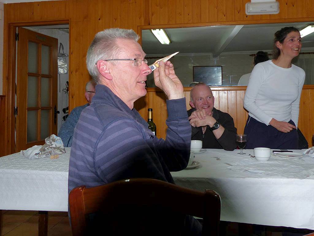 We all gathered in the bar by 8PM and then got ushered into the breakfast room for Toya's meal. I didn't do so well with this meal but everyone else seemed to have a good feed. Then followed the famous singathon. Ayala and Toya were playing guitars and a number of popular English and Spanish songs were sung. I left at 10:30AM and retired for the night.