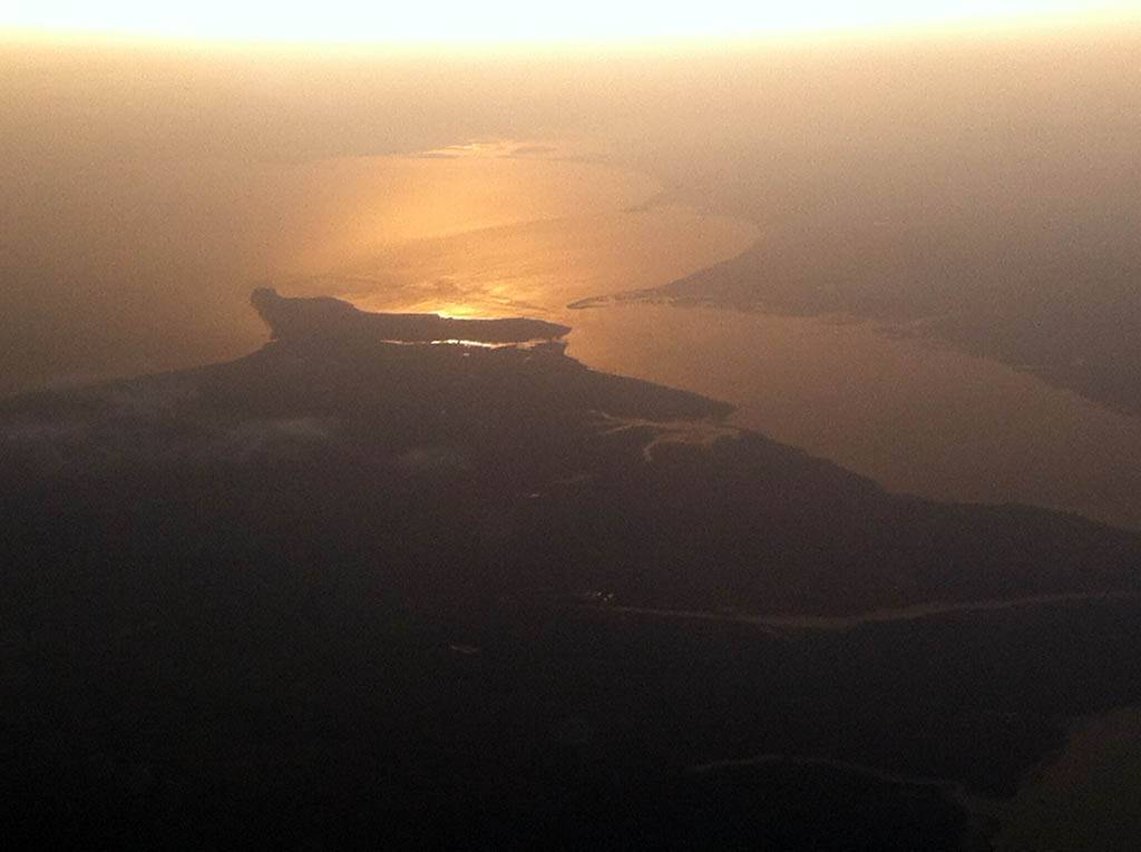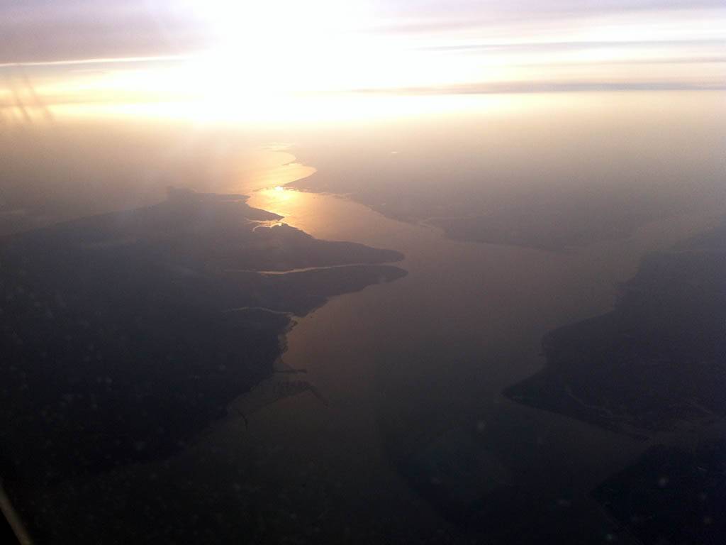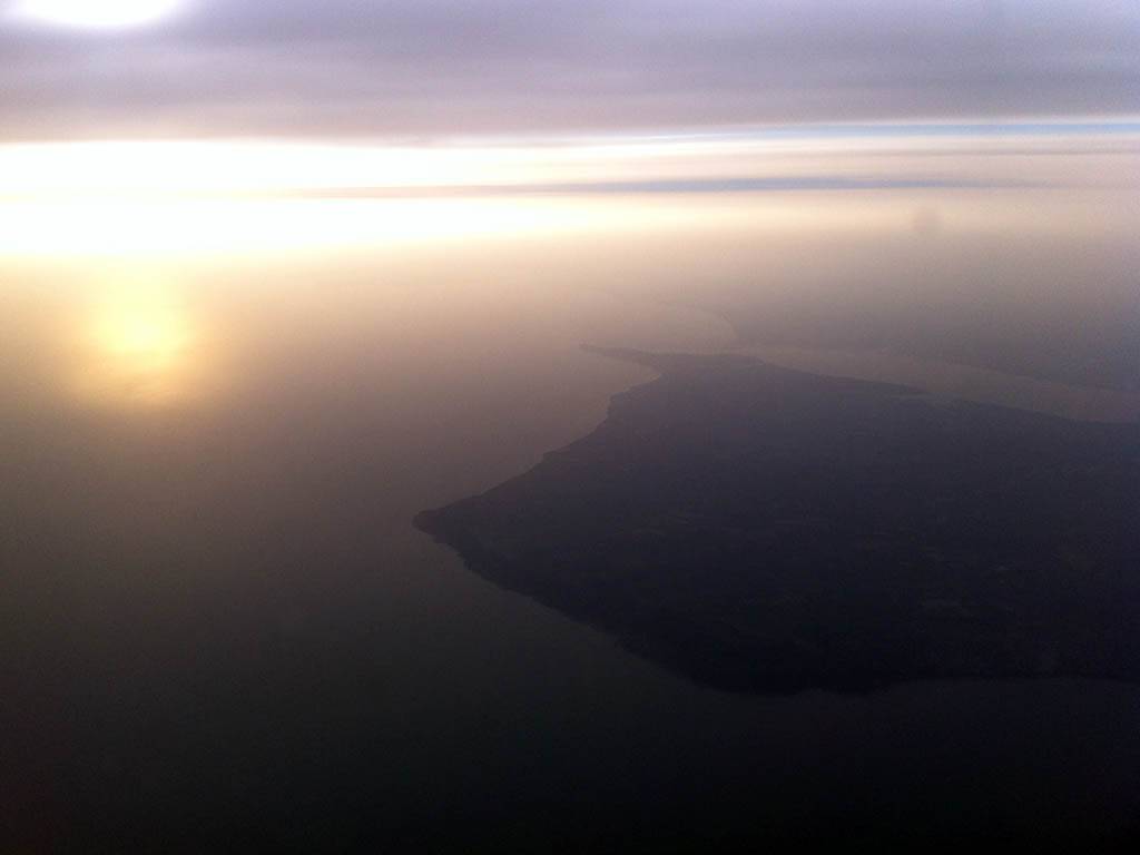 Subdued cloudscapes with clearer looking air to the West. | Nice sunshine reflecting on the Atlantic west of France. | Flying in over the Isle of Wight. |