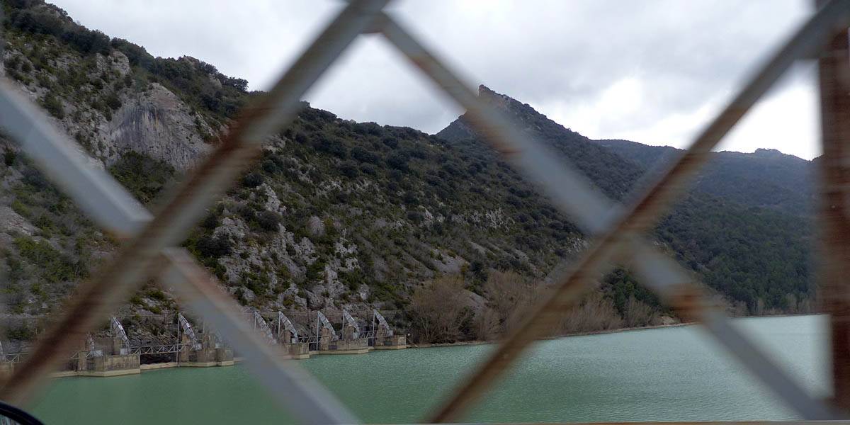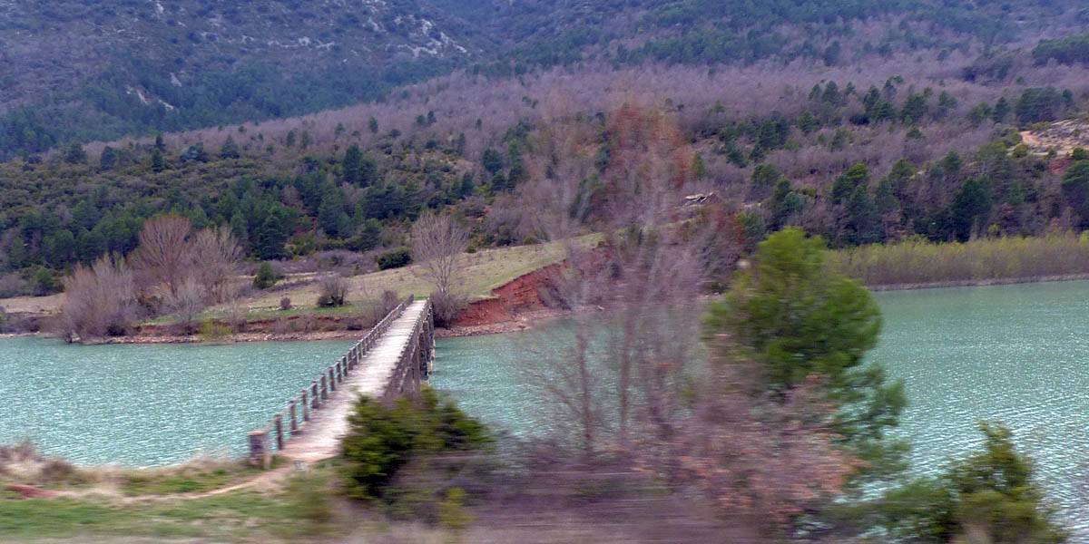 A prominent building south of Santa Maria as I approach the A132 bridge over Embalse de la Pena. | Crossing the A132 bridge over Embalse de la Pena. |