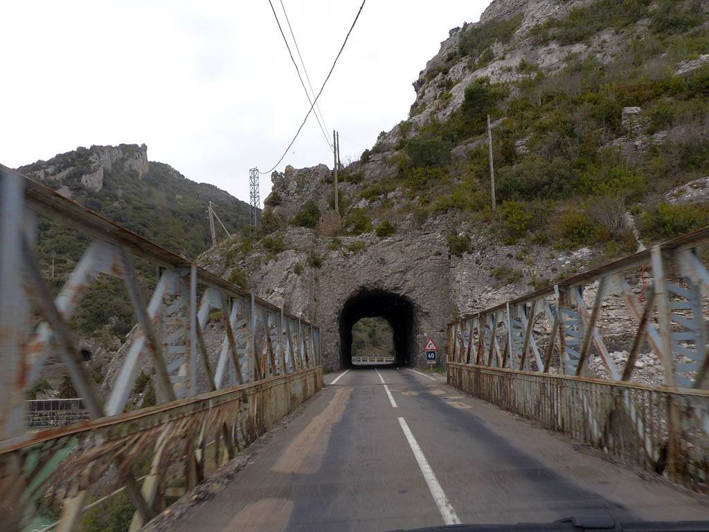 Driving along fun twisty roads. This would definitely make a good biker road! | A narrow bridge over the western end of Embalse de la Pena as I approach Santa Maria. |