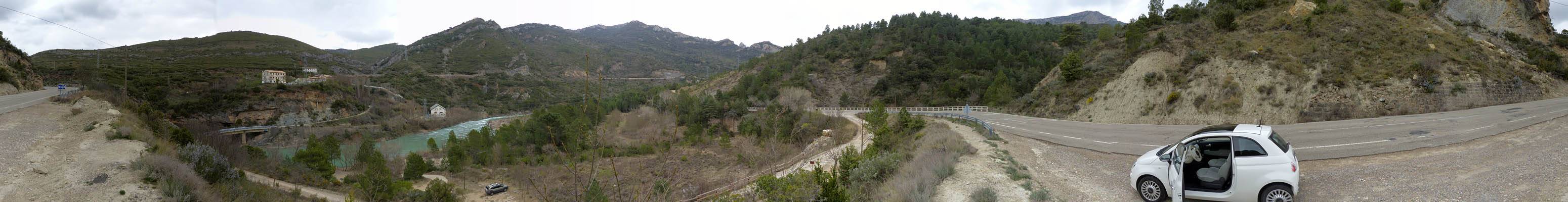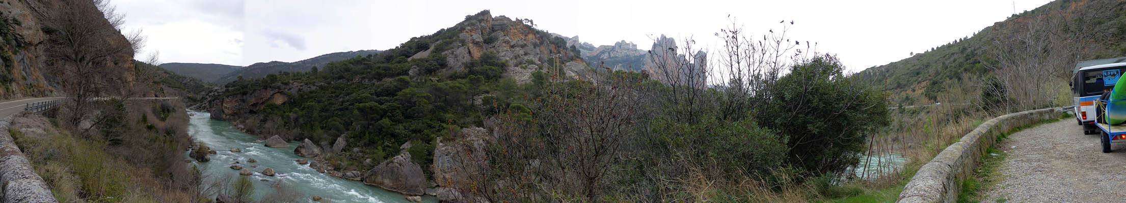 360 degree panorama at a layby along the Rio Gallego. | Big cliffs ahead a hint of what's to come. | Another 180 degree panorama further along the Rio Gallego. |