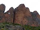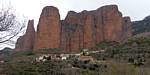 Panoramas of Riglos from the church yard. | The church tower below the cliffs. |