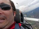 This was the most dramatic flight of the trip. John and I launched at about 1:15PM in the DG1000. It felt much like yesterday's tow near Stage 1 when we released into good lift so I released again, but promptly lost the lift. After a few attempts at bowl bashing below the summit of Stage 1 we were getting rather low and retreated back to the valley. As we got down towards circuit height we blundered into a strong narrow thermal. I wasted no time cranking the glider into a sharp turn to catch the thermal. By climbing this thermal we rescued the flight from an early landing, drifting downwind to just East and Southeast of the airfield. Eventually we got to over 5000 feet as I pushed back upwind along the line of energy. Here the lift got smooth as it transitioned into wave at a steady 4kts. At maybe 8000 feet it jumped up to 8kts for a while before settling down. By staying in the same spot we went all the way to 15,000 feet as we started to push upwind to the mountains. Lovely lenticulars were starting to form rapidly just below us. I wanted to climb up to FL195 but John was worried about the weather upwind and wanted the next pilot to have a go. So with gritted teeth I agreed to descend, pausing periodically to let the gel coat warm up again. Low down it was very rough and it was a 15kt Northwesterly crosswind. The main runway was busy so I landed us on the auxiliary runway. It was a bit bumpy but we got down without too much problem after 1hr27m.