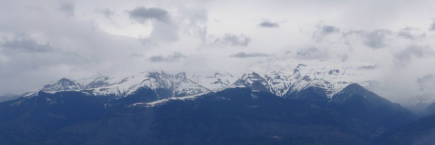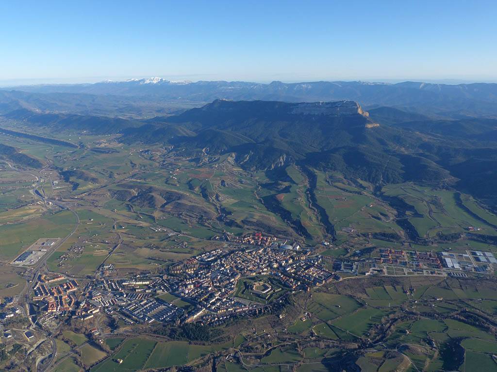 | Collarada from the Southwest. | Jaca and Oroel from the North over Canfranc. | Leaving the mountains behind as we retreat South. | Jaca and the fort from the north. | |