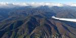 | Ridge soaring the North side of Stage 2 while looking South back towards Stage 1 and the airfield. | A pretty view down the Hecho Valley from near Stage 2. Javierregay near the mouth and the airfield and Santa Cilia beyond. | A Santa Cilia DG1000 flies Southwards below us down the Hecho Valley. Yesa visible in the background. Once again nice cumulus to the West but none here. | ||